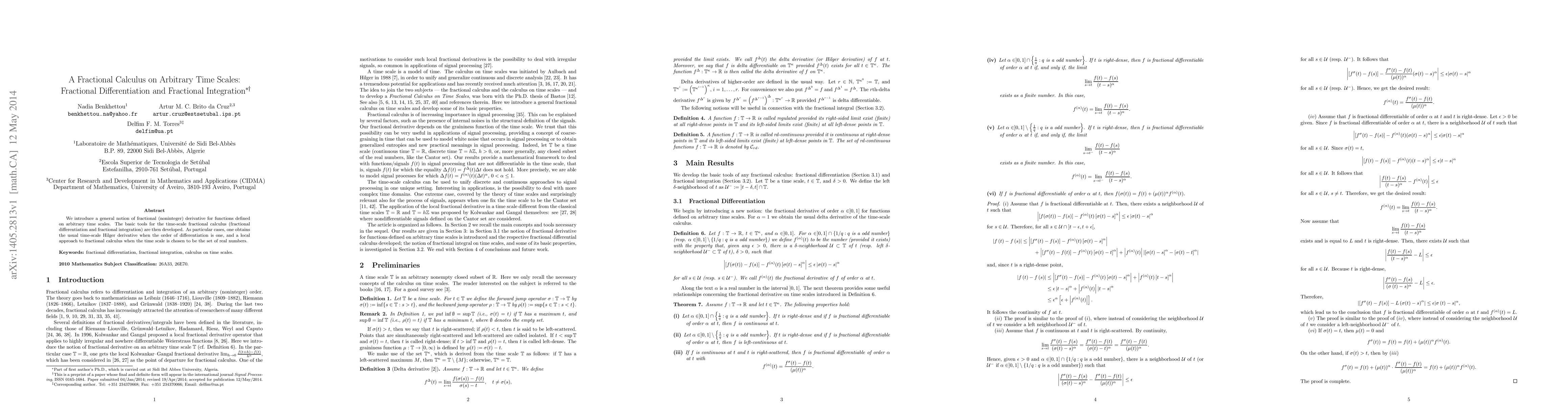 This paper develops a generalized notion of fractional derivatives for functions on arbitrary time scales, establishing tools for time-scale fractional calculus, including fractional differentiation and integration. It also connects to the Hilger derivative and a local approach to fractional calculus when the time scale is the set of real numbers.
