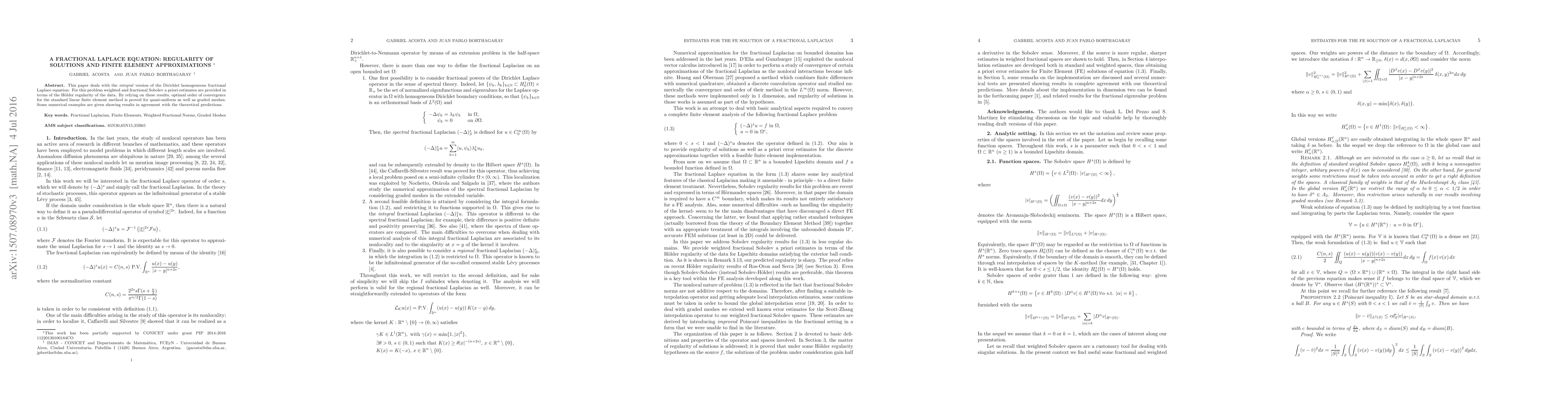 This paper investigates the regularity of solutions to the integral version of the Dirichlet homogeneous fractional Laplace equation, providing weighted and fractional Sobolev estimates. It also proves optimal convergence for the standard linear finite element method on both quasi-uniform and graded meshes, supported by numerical examples.