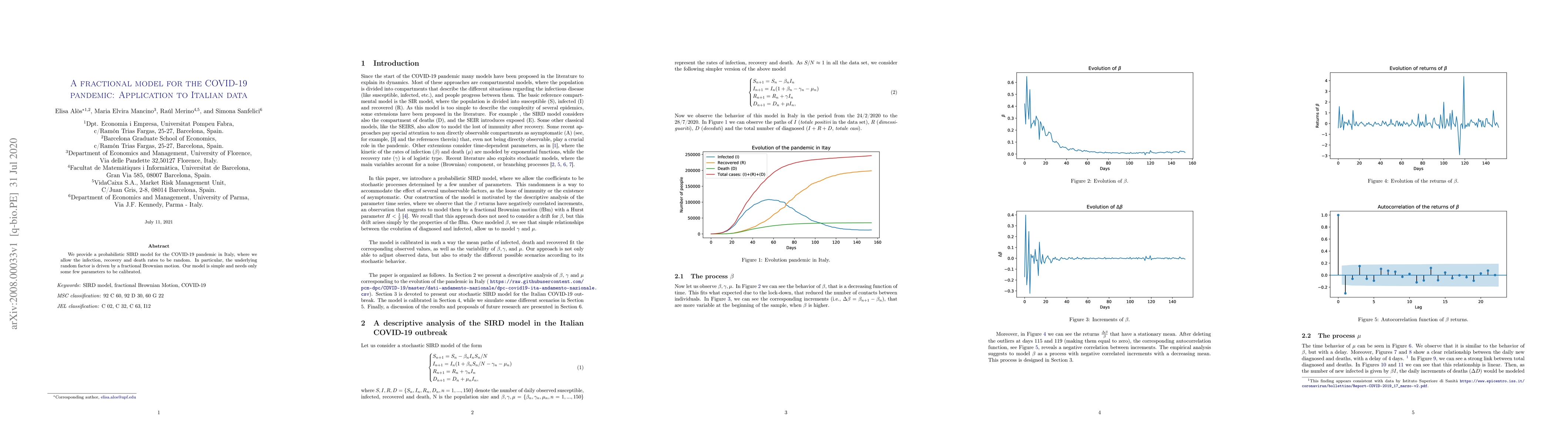 This paper introduces a probabilistic SIRD model for COVID-19 in Italy, where infection, recovery, and death rates are modeled as random variables driven by fractional Brownian motion. The model requires minimal parameters and is calibrated using Italian data.