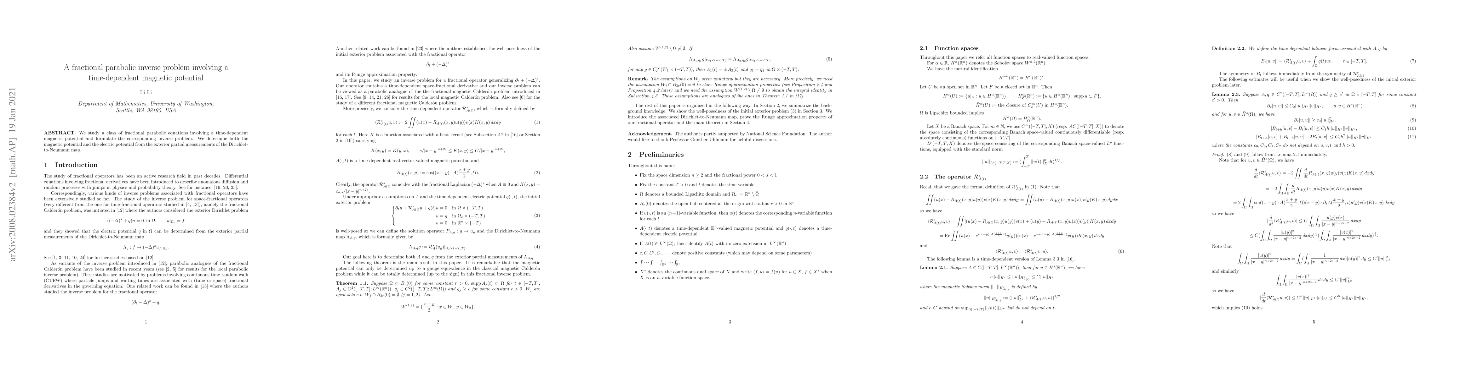 Summary: This paper investigates fractional parabolic equations with a time-dependent magnetic potential and formulates an inverse problem to determine both the magnetic and electric potentials using exterior partial measurements of the Dirichlet-to-Neumann map.