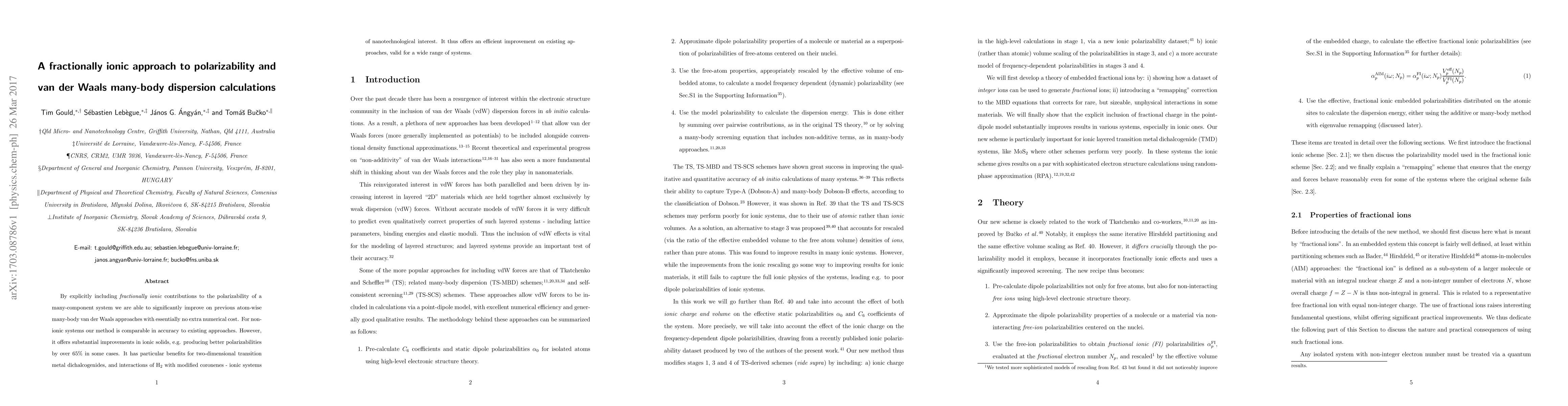 By explicitly including fractionally ionic contributions to the polarizability of a many-component system we are able to significantly improve on previous atom-wise many-body van der Waals approaches with essentially no extra numerical cost. For non-ionic systems our method is comparable in accuracy to existing approaches. However, it offers substantial improvements in ionic solids, e.g. producing better polarizabilities by over 65% in some cases. It has particular benefits for two-dimensional transition metal dichalcogenides, and interactions of H$_2$ with modified coronenes - ionic systems of nanotechnological interest. It thus offers an efficient improvement on existing approaches, valid for a wide range of systems.