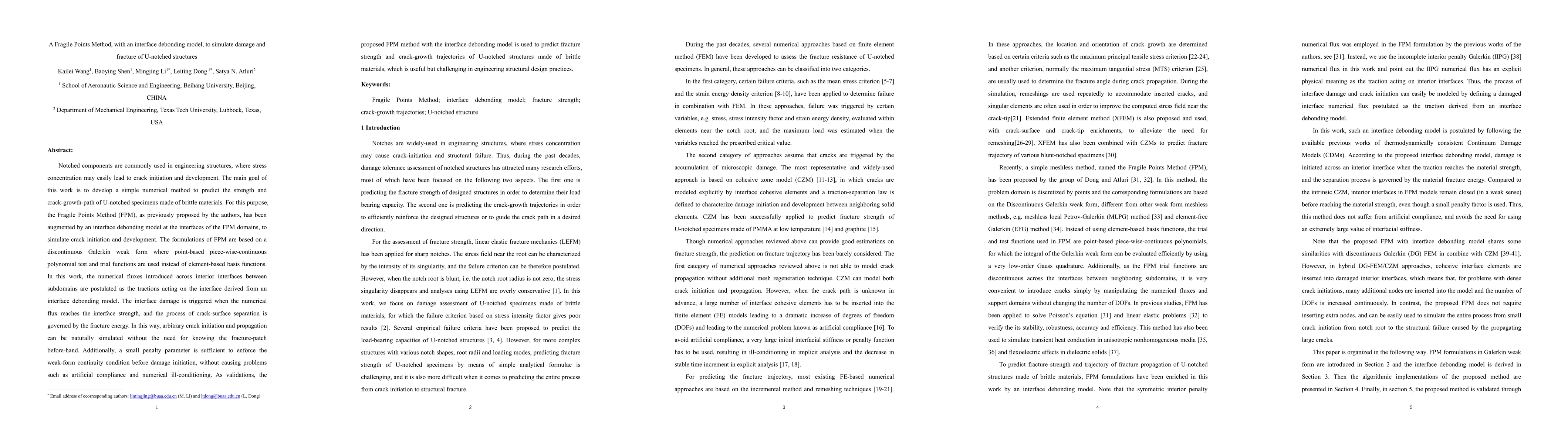 Researchers developed a new method to predict damage and fracture in U-notched structures made of brittle materials, using a combination of the Fragile Points Method and an interface debonding model to simulate crack initiation and development.