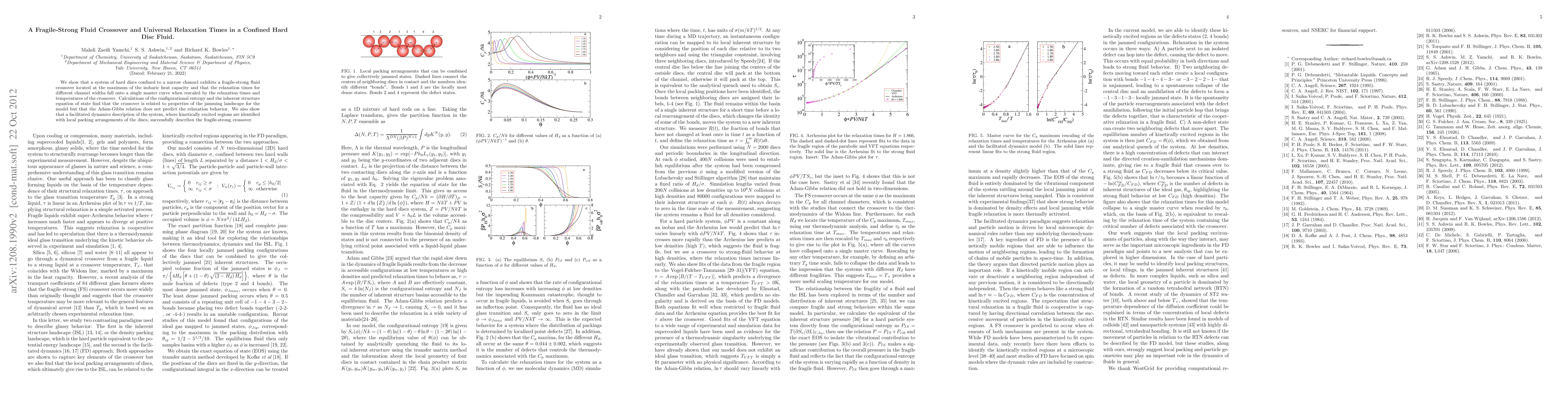 This research reveals a fragile-strong fluid crossover in confined hard disc systems at the peak of isobaric heat capacity, and demonstrates that relaxation times collapse onto a master curve when scaled by crossover times and temperatures. The study finds the crossover correlates with jamming properties but diverges from the Adams-Gibbs relation, while a facilitated dynamics model effectively captures the crossover phenomenon.