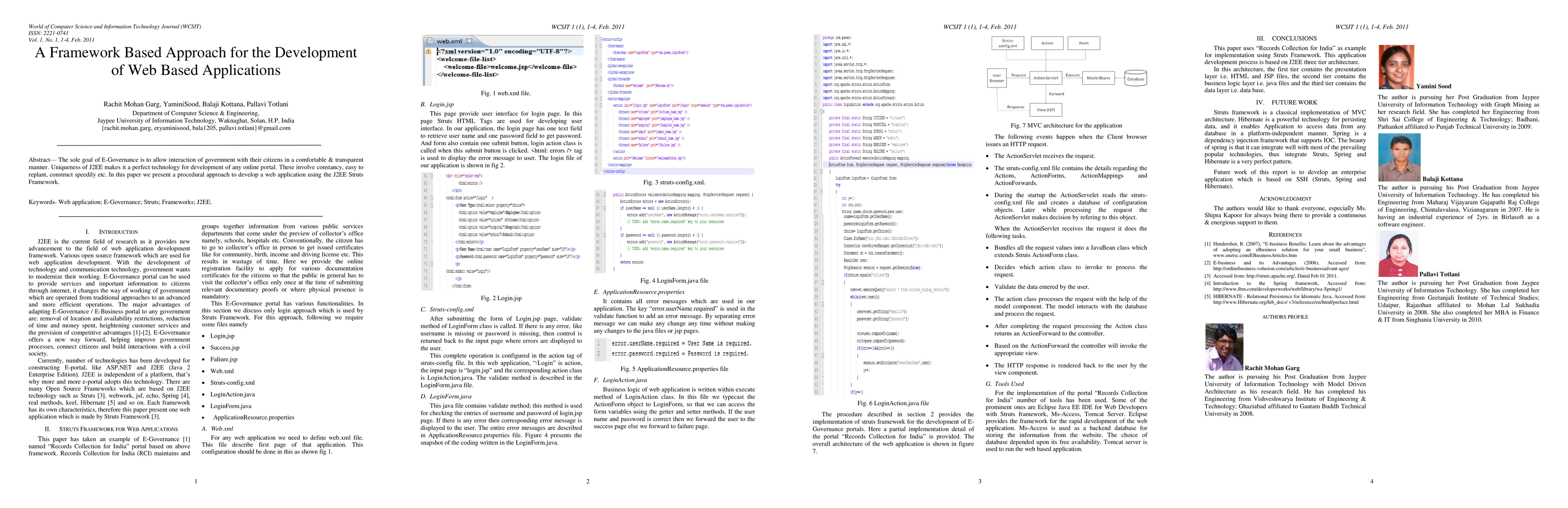 This paper proposes a procedural framework for developing web-based applications using the J2EE Struts Framework, emphasizing its suitability for E-Governance to facilitate transparent and efficient government-citizen interactions. The approach leverages the robustness and rapid deployment capabilities of J2EE technology.