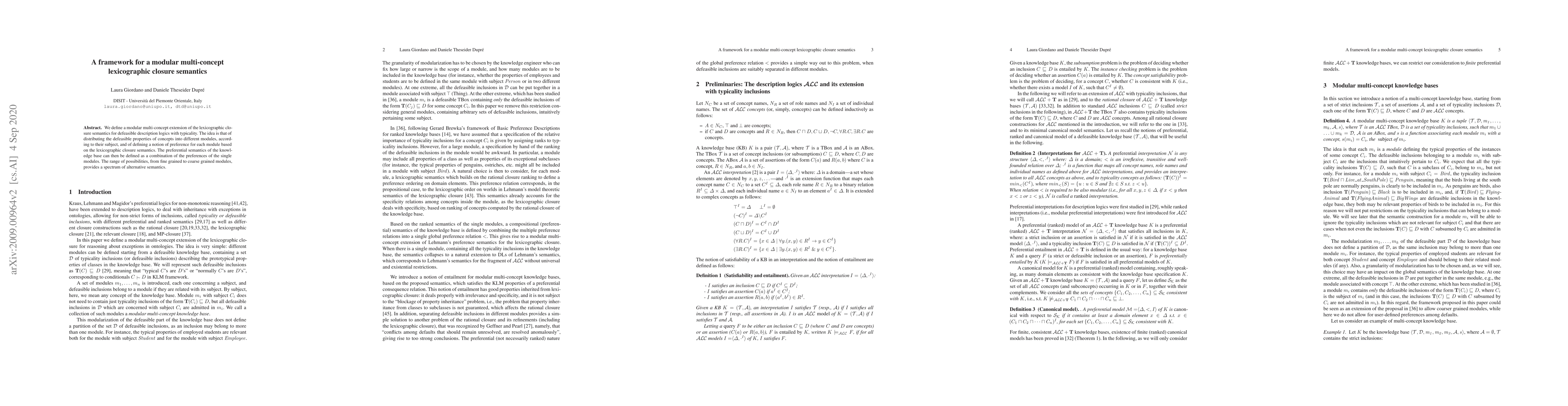 This paper proposes a modular multi-concept extension of lexicographic closure semantics for defeasible description logics, distributing defeasible properties into different modules and defining preferences based on lexicographic closure. The resulting preferential semantics of the knowledge base combines module preferences, offering a spectrum of alternative semantic interpretations.