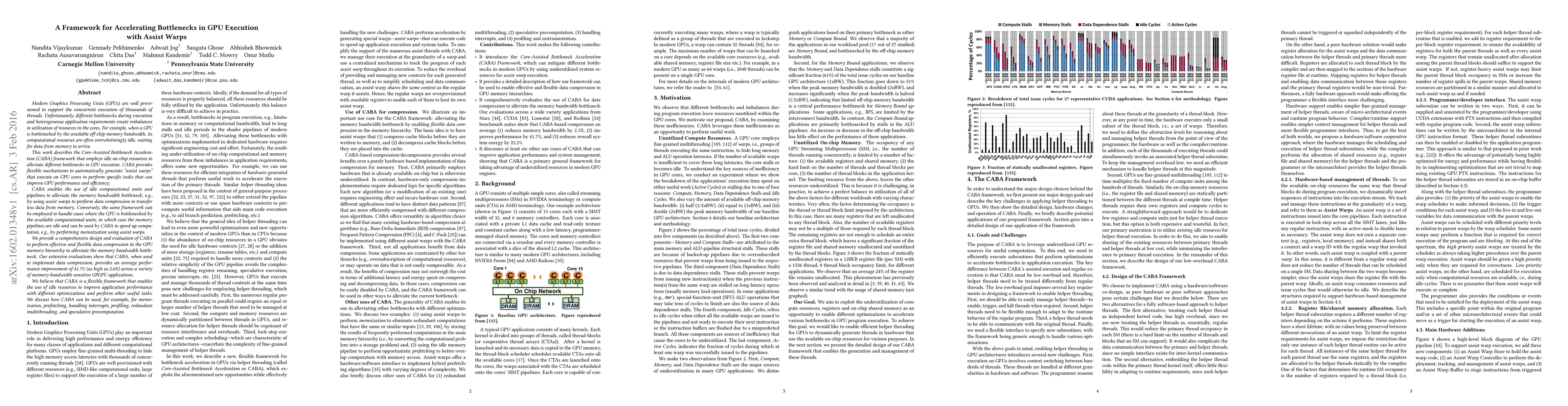 The paper presents the Core-Assisted Bottleneck Acceleration (CABA) framework to address resource imbalances in GPU execution by utilizing idle computational resources. CABA generates "assist warps" to perform tasks like data compression, significantly improving performance by alleviating memory bandwidth bottlenecks, with an average improvement of 41.7% across tested applications.