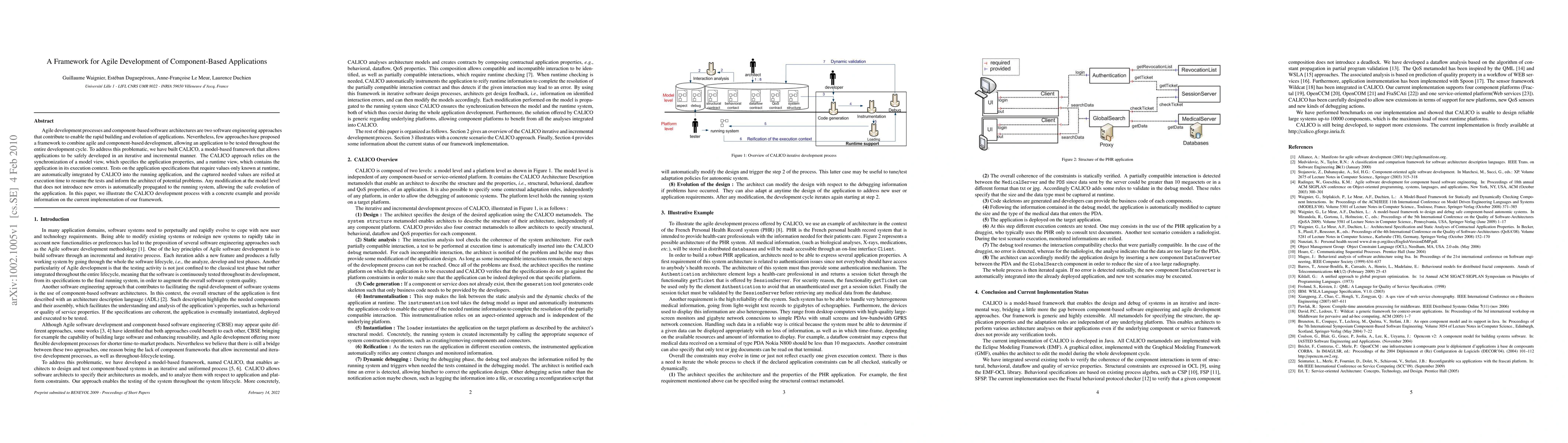 This paper introduces CALICO, a model-based framework for the agile development of component-based applications, enabling iterative and incremental updates through synchronization of model and runtime views. CALICO automatically integrates and executes tests, propagates model changes to the runtime system, and informs architects of potential issues.