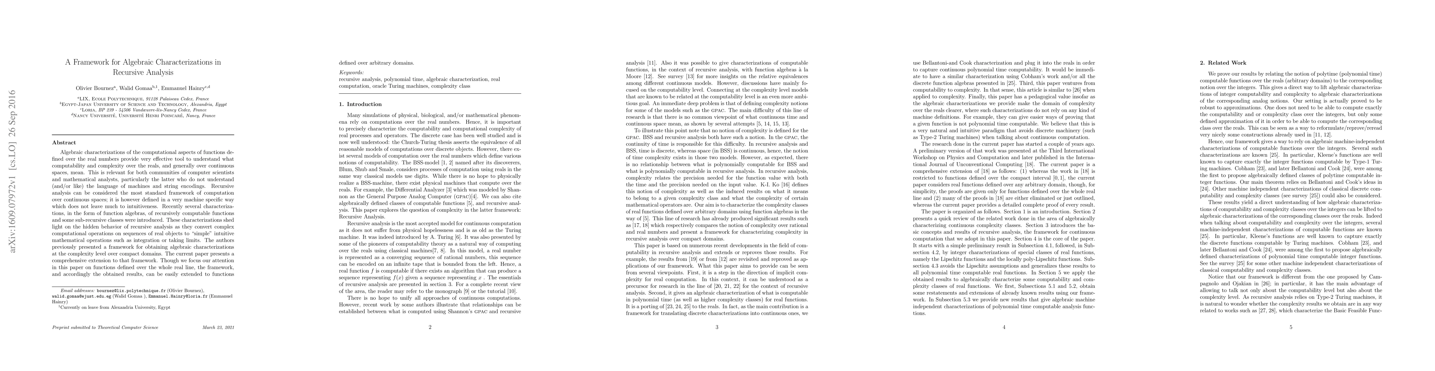 Researchers develop a framework for algebraic characterizations in recursive analysis, providing insights into computability and complexity over continuous spaces, with implications for both computer science and mathematical analysis communities.
