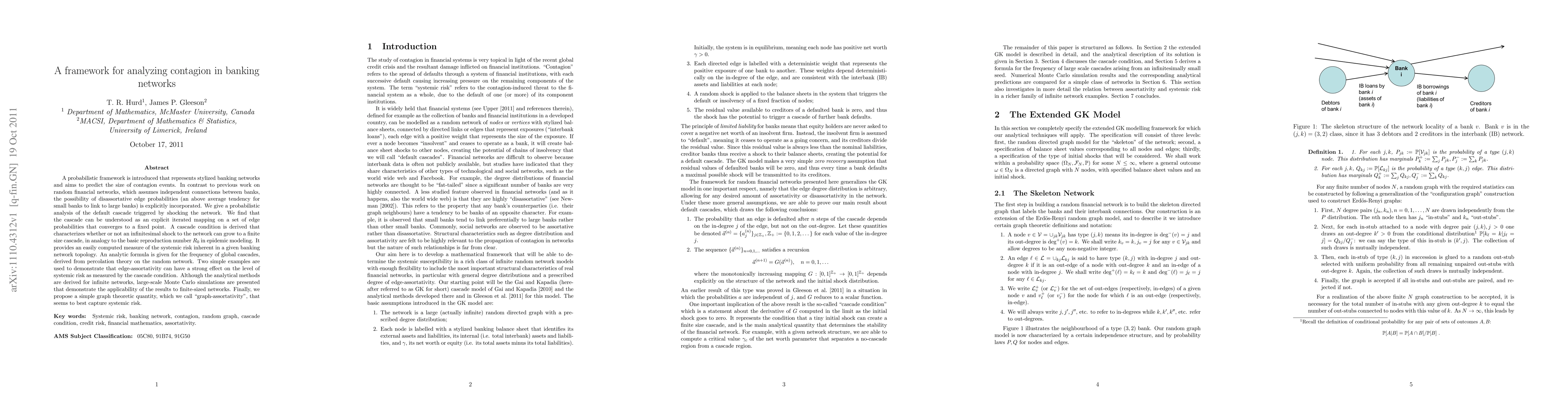 This paper introduces a probabilistic framework to analyze contagion in banking networks, incorporating disassortative edge probabilities to better represent real-world connections. It derives a cascade condition analogous to the basic reproduction number, providing a measure of systemic risk and demonstrating its effect through examples and simulations.