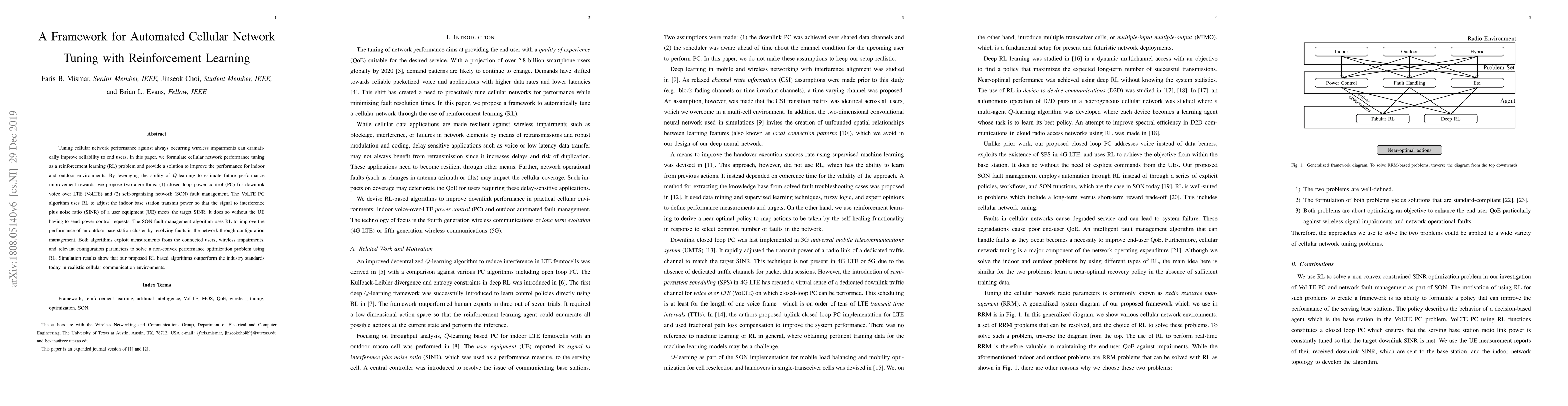 Researchers propose a framework for optimizing cellular network performance using reinforcement learning to improve reliability in indoor and outdoor environments, outperforming industry standards.