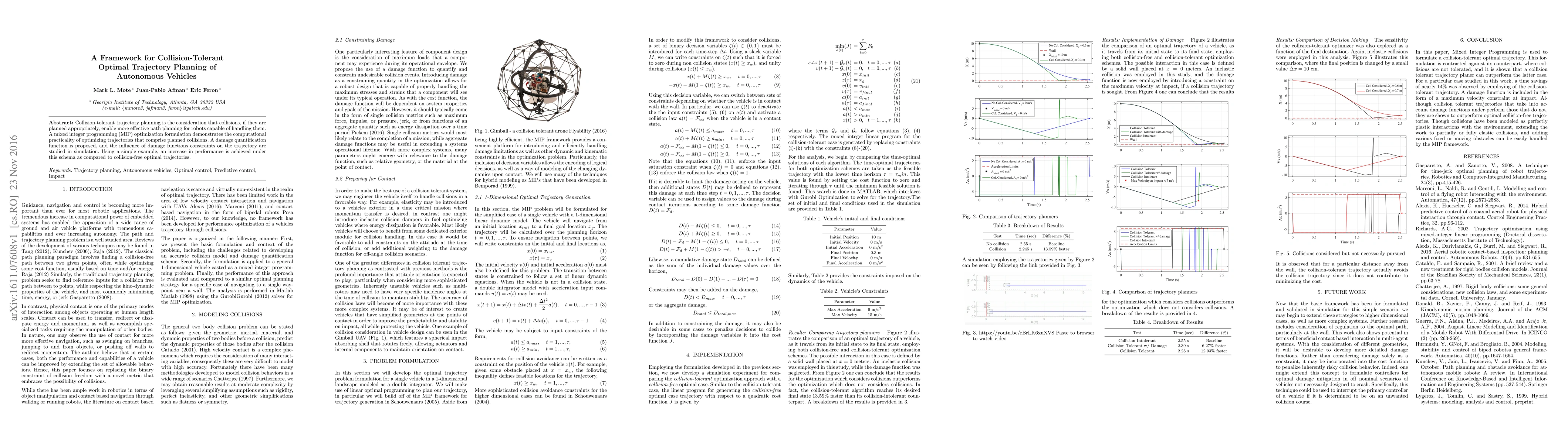 This paper presents a framework for optimal trajectory planning in autonomous vehicles that incorporates planned collisions through mixed integer programming. The study demonstrates improved performance through a damage quantification function and simulation, showing that strategically planned collisions can enhance path efficiency.