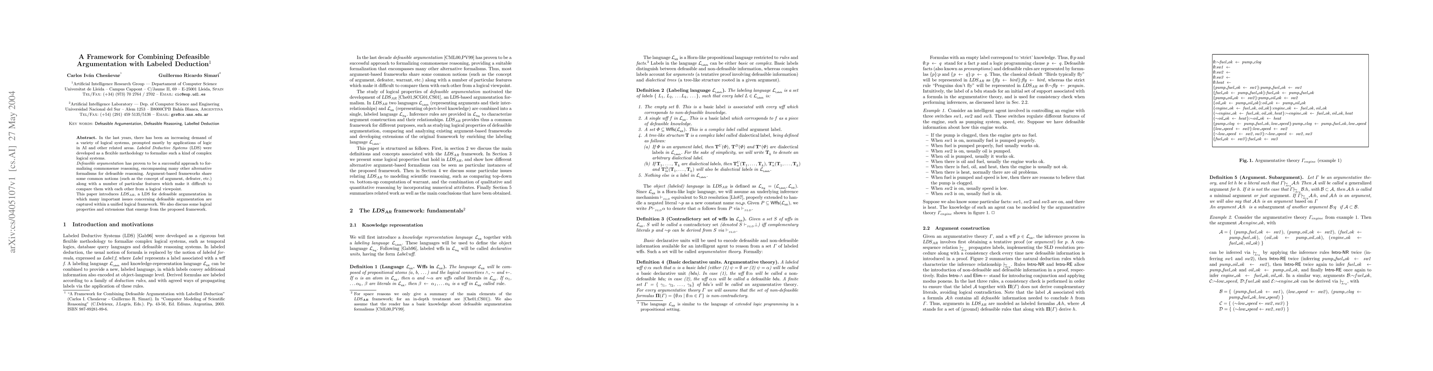 The paper introduces LDSar, a Labeled Deductive System for defeasible argumentation, providing a unified logical framework for important issues in defeasible argumentation.