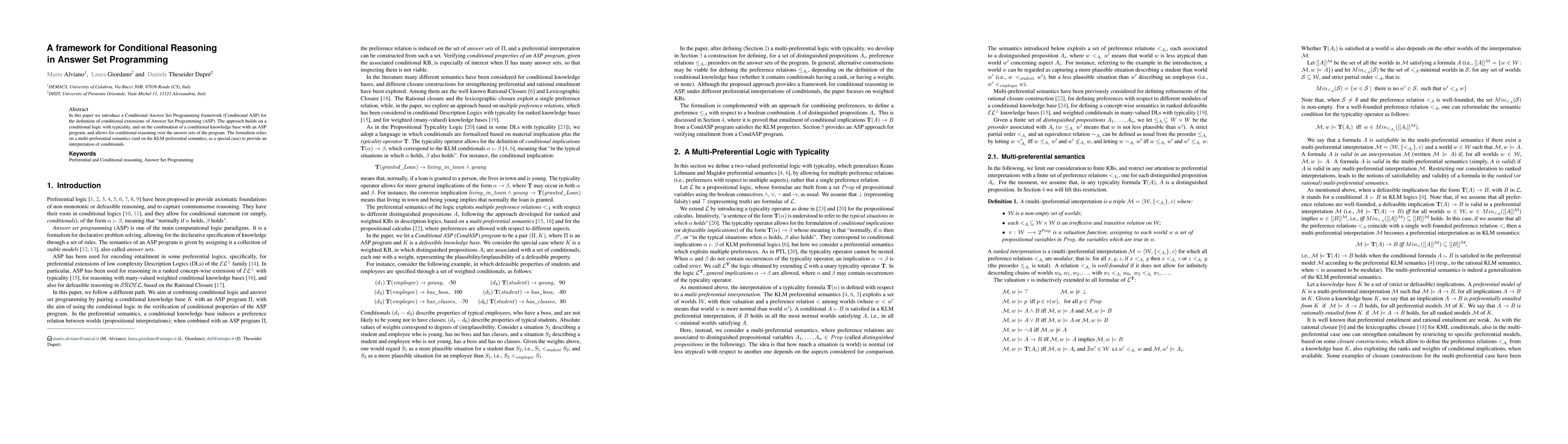 This work extends existing ASP by incorporating conditional reasoning, providing a novel approach distinct from traditional ASP and other conditional logics