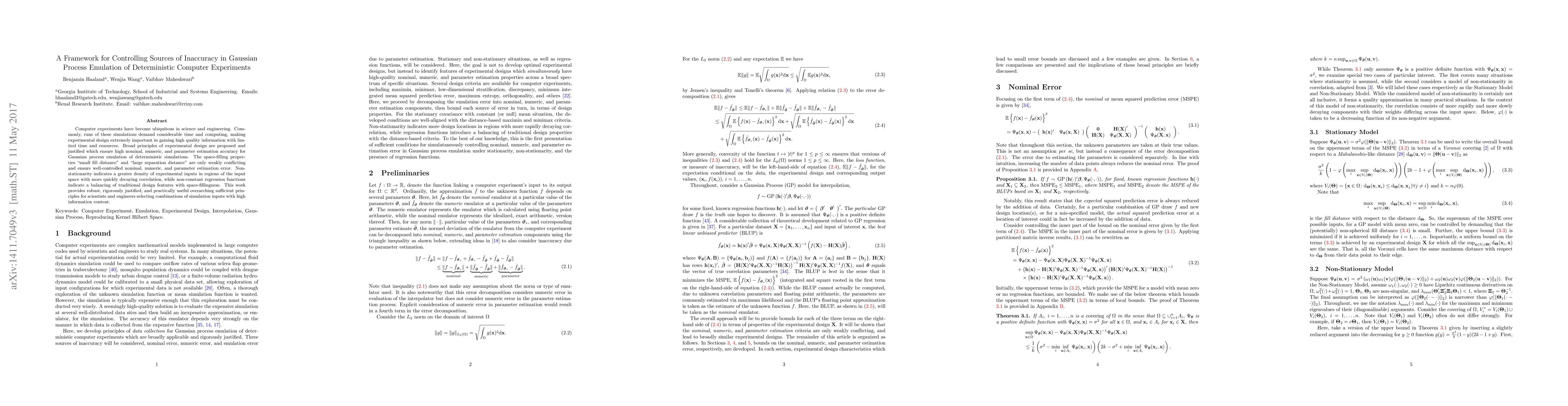 Computer experiments have become ubiquitous in science and engineering. Commonly, runs of these simulations demand considerable time and computing, making experimental design extremely important in gaining high quality information with limited time and resources. Principles of experimental design are proposed and justified which ensure high nominal, numeric, and parameter estimation accuracy for Gaussian process emulation of deterministic simulations. The space-filling properties "small fill distance" and "large separation distance" are only weakly conflicting and ensure well-controlled nominal, numeric, and parameter estimation error, while non-stationarity requires a greater density of experimental inputs in regions of the input space with more quickly decaying correlation. This work will provide scientists and engineers with robust, rigorously justified, and practically useful overarching principles for selecting combinations of simulation inputs with high information content.