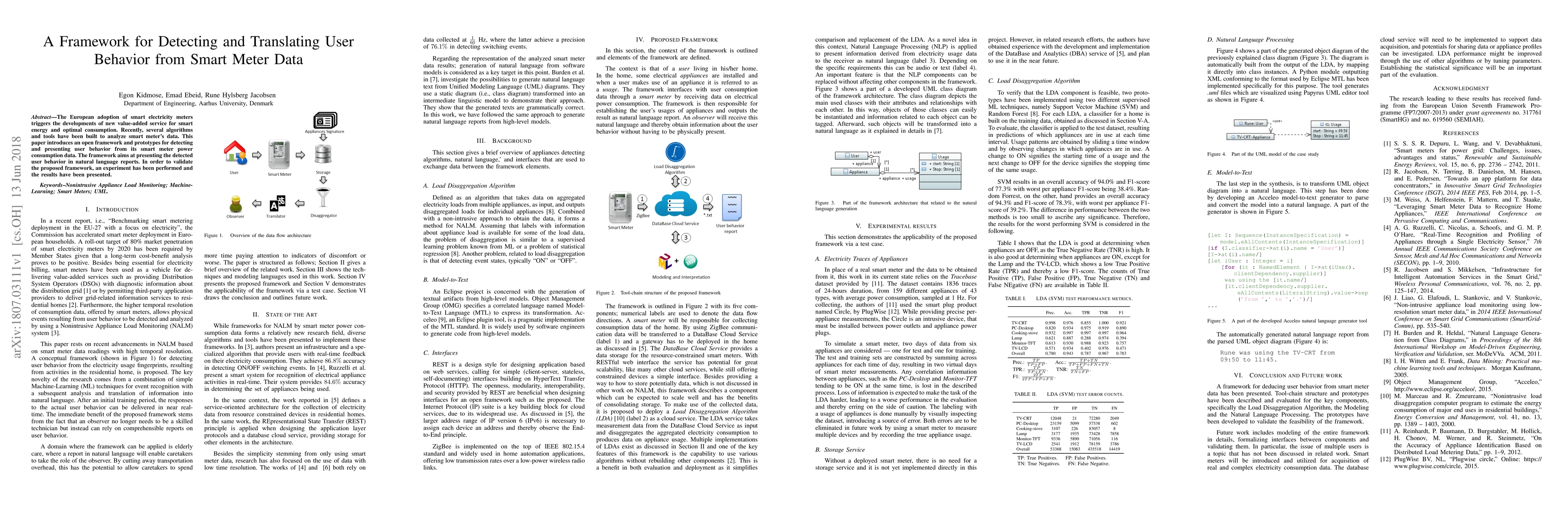 This paper presents an open framework for detecting and translating user behavior from smart meter data into natural language reports, validated through an experiment. The framework aims to provide new value-added services for smart energy consumption optimization.
