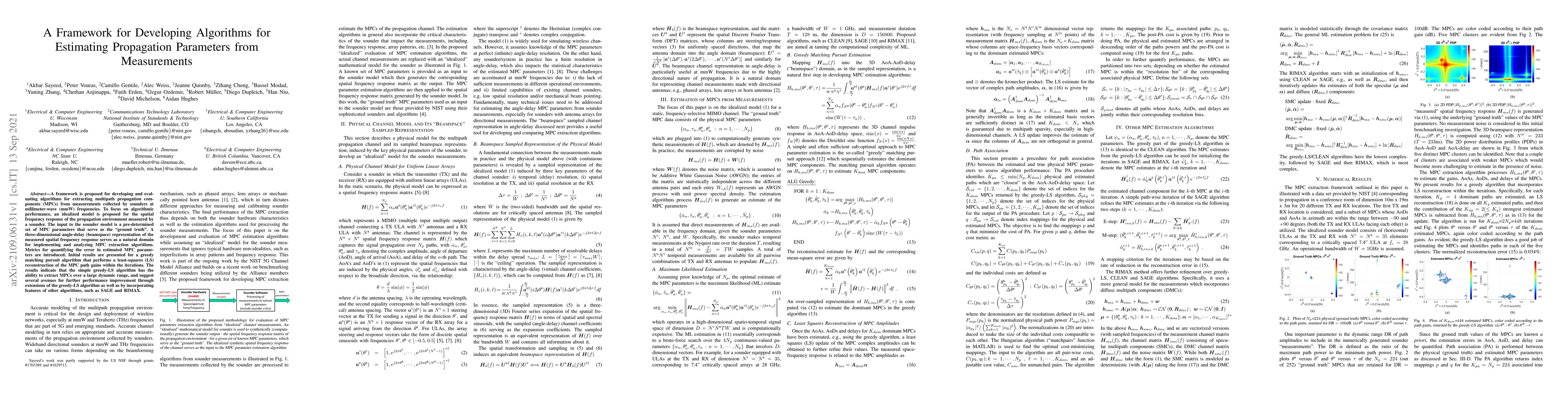 Researchers proposed a framework for developing algorithms to extract multipath propagation components from measurements taken by sounders at millimeter-wave frequencies. Their initial results show that a simple greedy algorithm can accurately estimate MPCs over a large dynamic range.