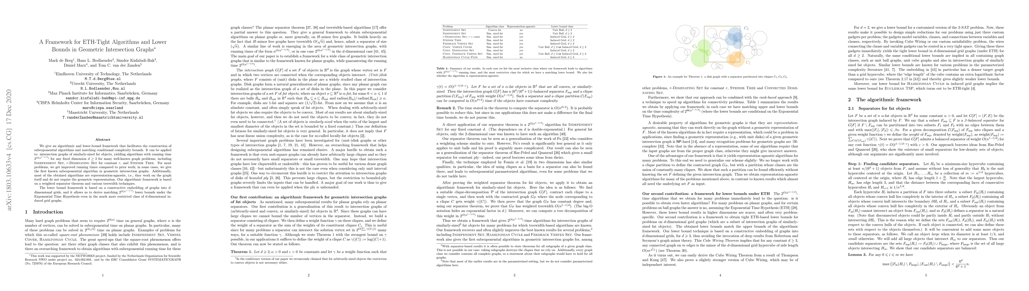 This paper presents a framework for developing ETH-tight algorithms and lower bounds for geometric intersection graphs, achieving subexponential running times for problems like Independent Set and Steiner Tree, and establishing matching lower bounds under the Exponential Time Hypothesis. The framework leverages a weighted separator theorem and treewidth techniques.