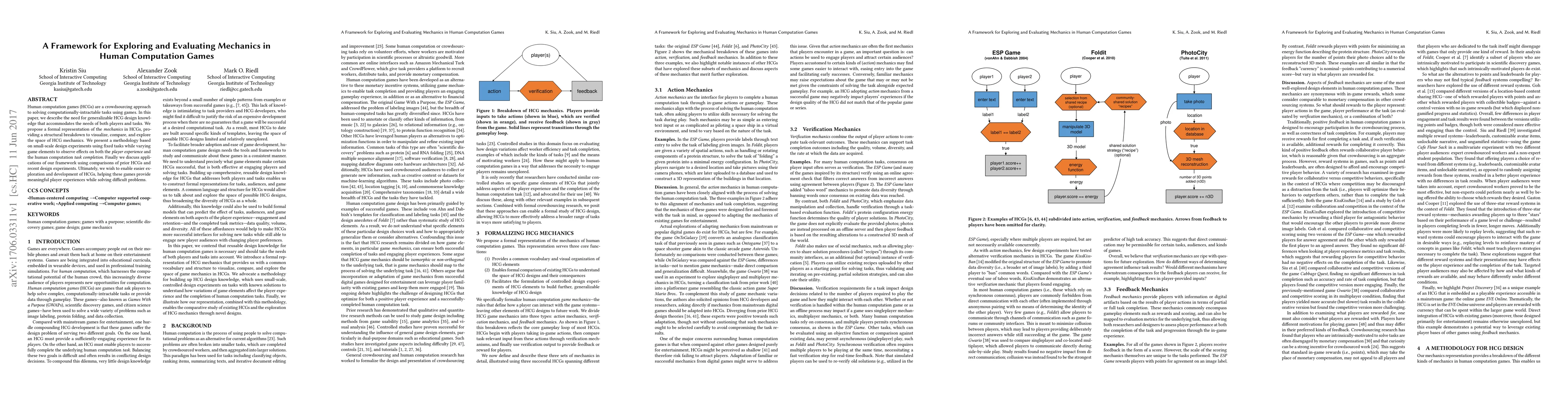 This paper proposes a framework for designing human computation games, enabling easier exploration of mechanics to balance player experience and task completion. The framework provides a structural breakdown to visualize and compare game elements and their effects on players and tasks.