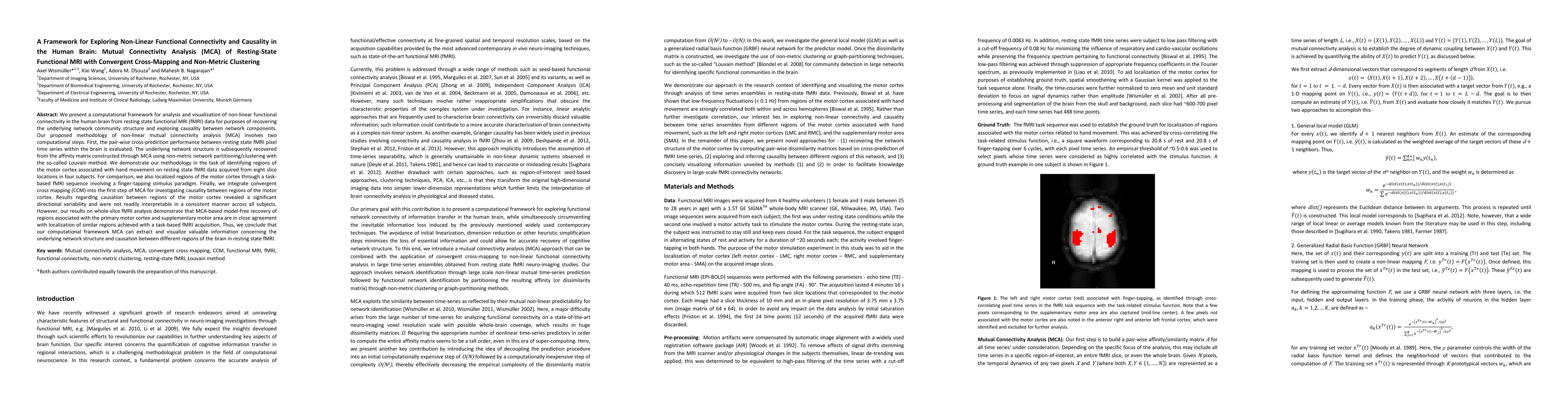This paper introduces a computational framework for analyzing non-linear functional connectivity and causality in the human brain using resting state fMRI. The proposed mutual connectivity analysis (MCA) method evaluates cross-prediction performance and employs non-metric clustering to recover network structures, demonstrating its effectiveness in identifying motor cortex regions.
