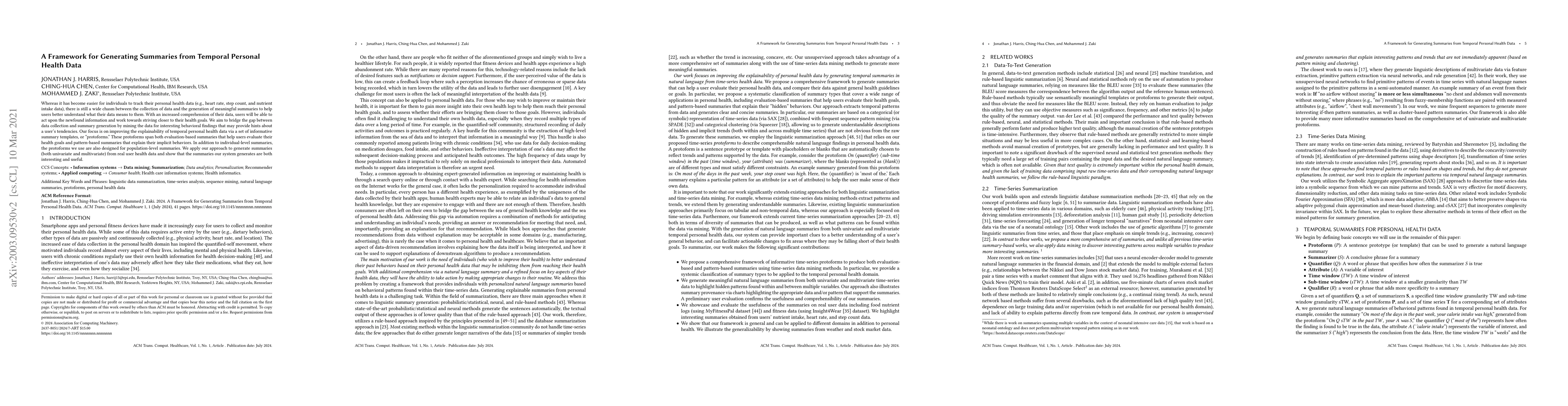 This paper proposes a framework to generate meaningful explanations from temporal personal health data, aiming to bridge the gap between data collection and comprehension. It introduces "protoforms" for evaluation-based and pattern-based summaries to help users understand their health data and behaviors, demonstrating its effectiveness with real user data.