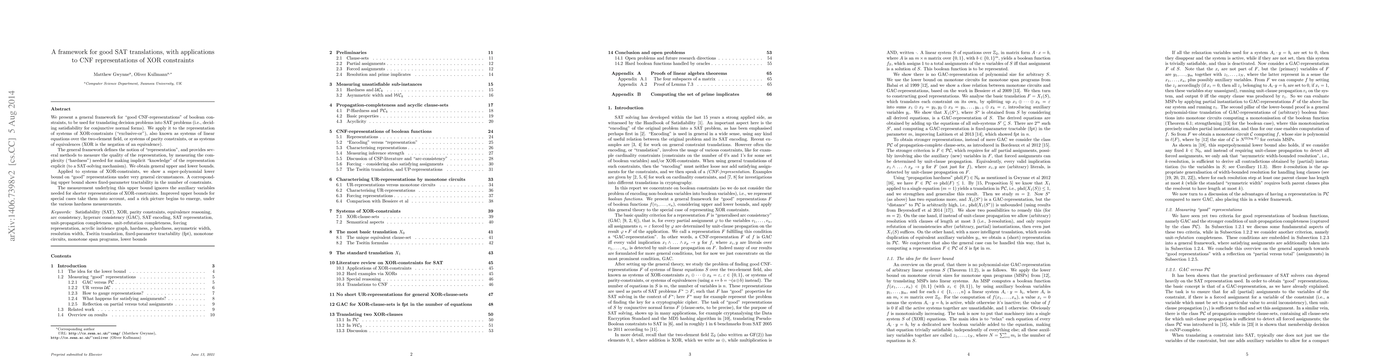 A new framework is proposed for translating XOR constraints into SAT problems, providing both upper and lower bounds on the complexity of representations.