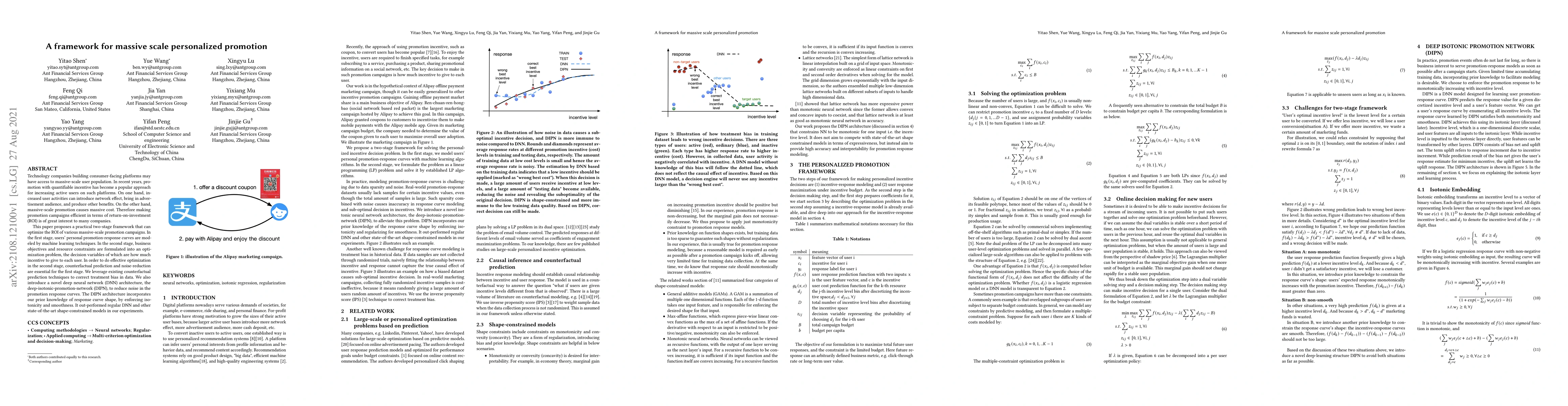 This paper introduces a two-stage framework for optimizing return-on-investment in massive-scale personalized promotions. It employs machine learning to model users' promotion-response curves and a novel deep neural network, DIPN, to reduce noise. The second stage formulates business objectives and constraints into an optimization problem to decide incentives for each user.