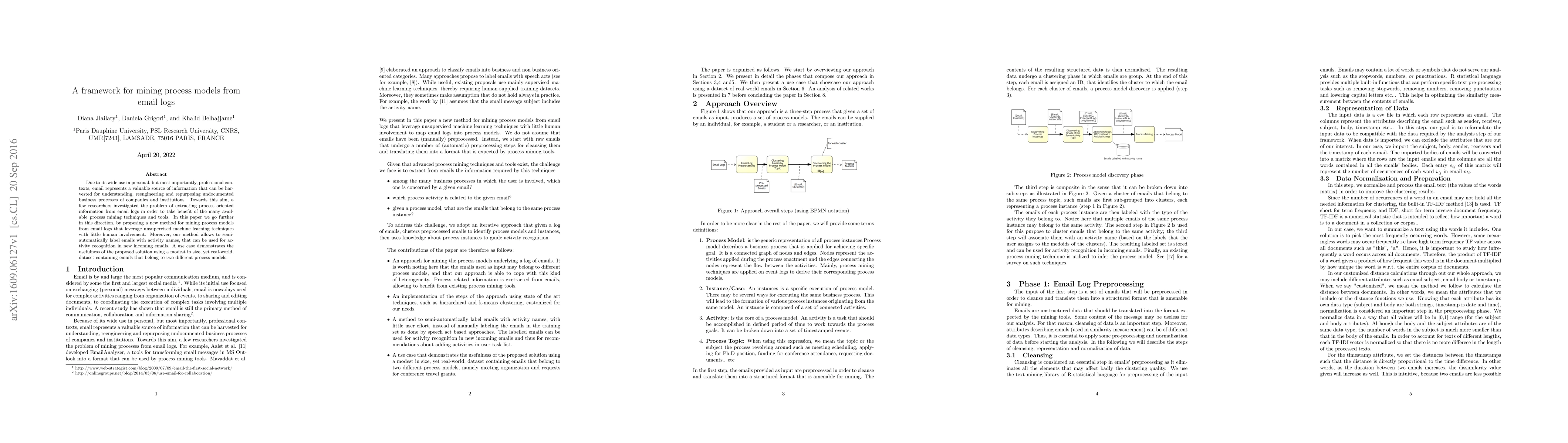 This paper proposes a novel method for mining process models from email logs using unsupervised machine learning, aiming to extract process-oriented information with minimal human intervention. The method also enables semi-automatic labeling of emails for activity recognition, demonstrated through a real-world use case involving two distinct process models.