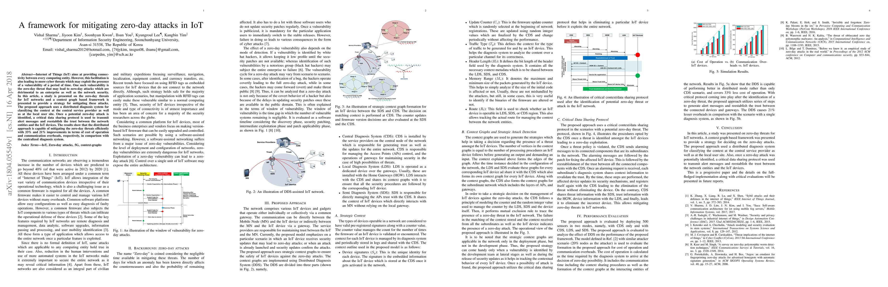 Internet of Things (IoT) aims at providing connectivity between every computing entity. However, this facilitation is also leading to more cyber threats which may exploit the presence of a vulnerability of a period of time. One such vulnerability is the zero-day threat that may lead to zero-day attacks which are detrimental to an enterprise as well as the network security. In this article, a study is presented on the zero-day threats for IoT networks and a context graph-based framework is presented to provide a strategy for mitigating these attacks. The proposed approach uses a distributed diagnosis system for classifying the context at the central service provider as well as at the local user site. Once a potential zero-day attack is identified, a critical data sharing protocol is used to transmit alert messages and reestablish the trust between the network entities and the IoT devices. The results show that the distributed approach is capable of mitigating the zero-day threats efficiently with 33% and 21% improvements in terms of cost of operation and communication overheads, respectively, in comparison with the centralized diagnosis system.