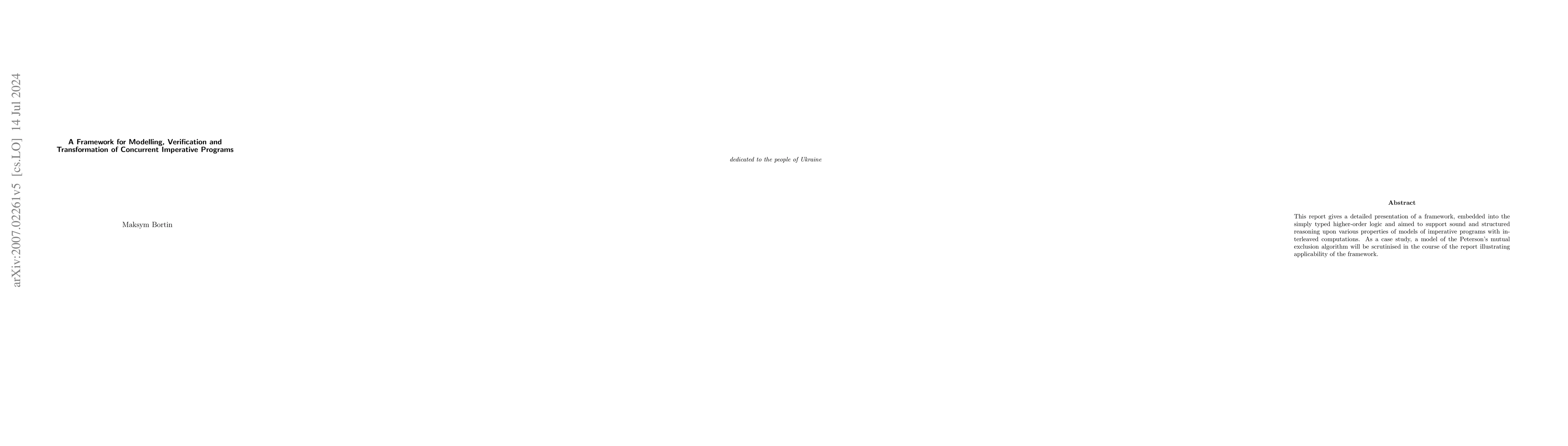 This paper presents a framework for modelling, verifying, and transforming concurrent imperative programs using a higher-order logic approach. It demonstrates the framework's effectiveness through a detailed analysis of Peterson's mutual exclusion algorithm.