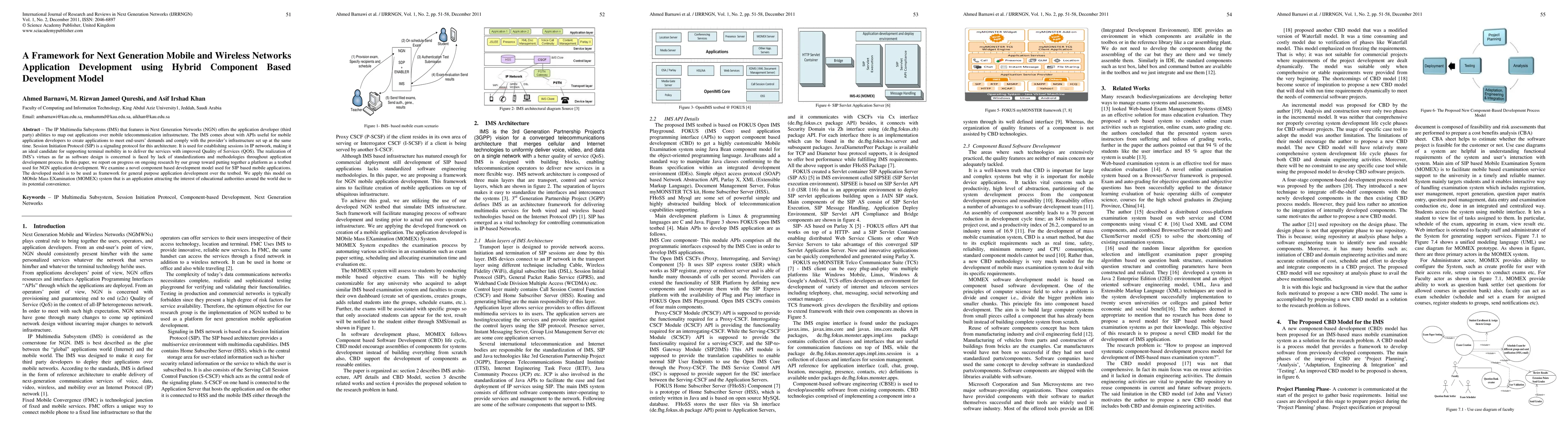 This paper proposes a hybrid component-based development model for next-generation mobile and wireless network applications, specifically targeting the IP Multimedia Subsystems (IMS) and applying it to the MObile Mass EXamination (MOMEX) system for educational purposes. The model aims to address the lack of standardizations in NGN application development.