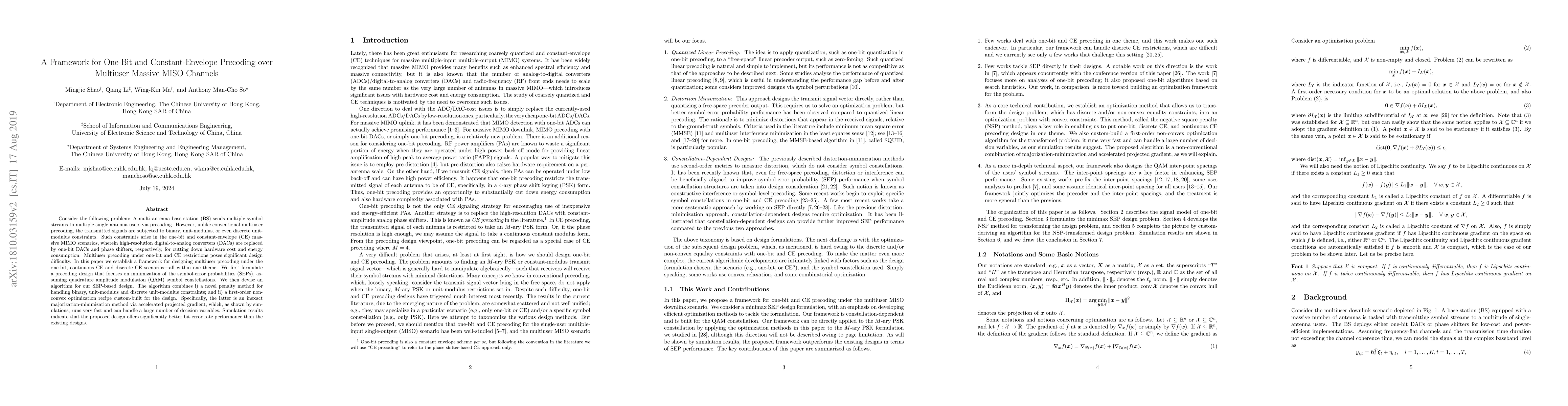 Consider the following problem: A multi-antenna base station (BS) sends multiple symbol streams to multiple single-antenna users via precoding. However, unlike conventional multiuser precoding, the transmitted signals are subjected to binary, unit-modulus, or even discrete unit-modulus constraints. Such constraints arise in the one-bit and constant-envelope (CE) massive MIMO scenarios, wherein high-resolution digital-to-analog converters (DACs) are replaced by one-bit DACs and phase shifters, respectively, for cutting down hardware cost and energy consumption. Multiuser precoding under one-bit and CE restrictions poses significant design difficulty. In this paper we establish a framework for designing multiuser precoding under the one-bit, continuous CE and discrete CE scenarios---all within one theme. We first formulate a precoding design that focuses on minimizations of symbol-error probabilities (SEPs), assuming quadrature amplitude modulation (QAM) constellations. We then devise an algorithm for our SEP-based design. The algorithm combines i) a novel penalty method for handling binary, unit-modulus and discrete unit-modulus constraints; and ii) a first-order non-convex optimization recipe custom-built for the design. Specifically, the latter is an inexact majorization-minimization method via accelerated projected gradient, which, as shown by simulations, runs very fast and can handle a large number of decision variables. Simulation results indicate that the proposed design offers significantly better bit-error rate performance than the existing designs.