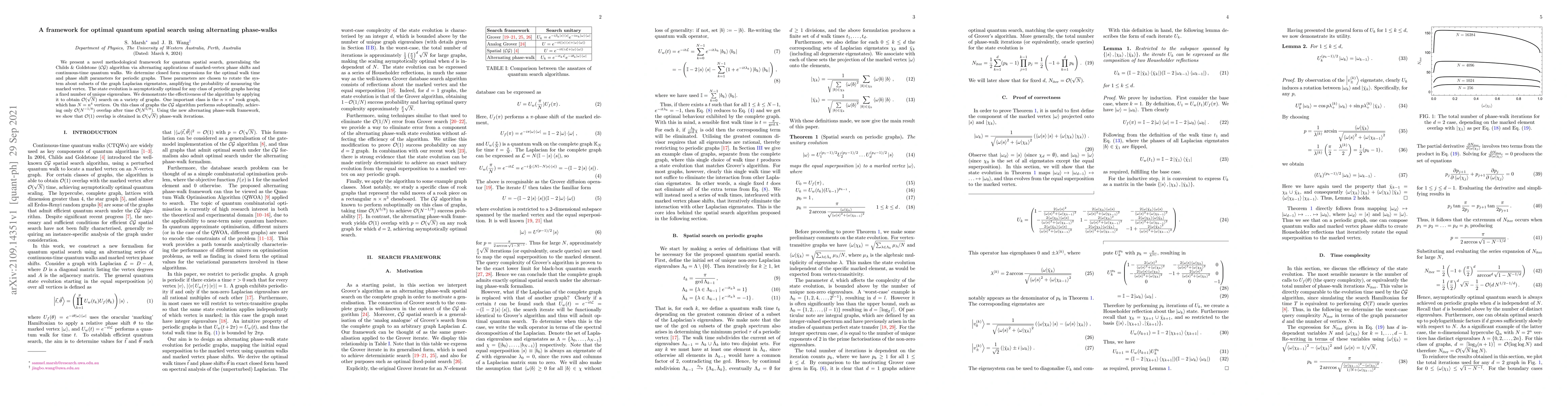 This paper introduces a novel quantum spatial search framework that generalizes the Childs & Goldstone algorithm using alternating phase-walks, achieving optimal $\mathcal{O}(\sqrt{N})$ search complexity on periodic graphs. The new method outperforms the $\mathcal{CG}$ algorithm on specific graph classes, notably the $n \times n^3$ rook graph.