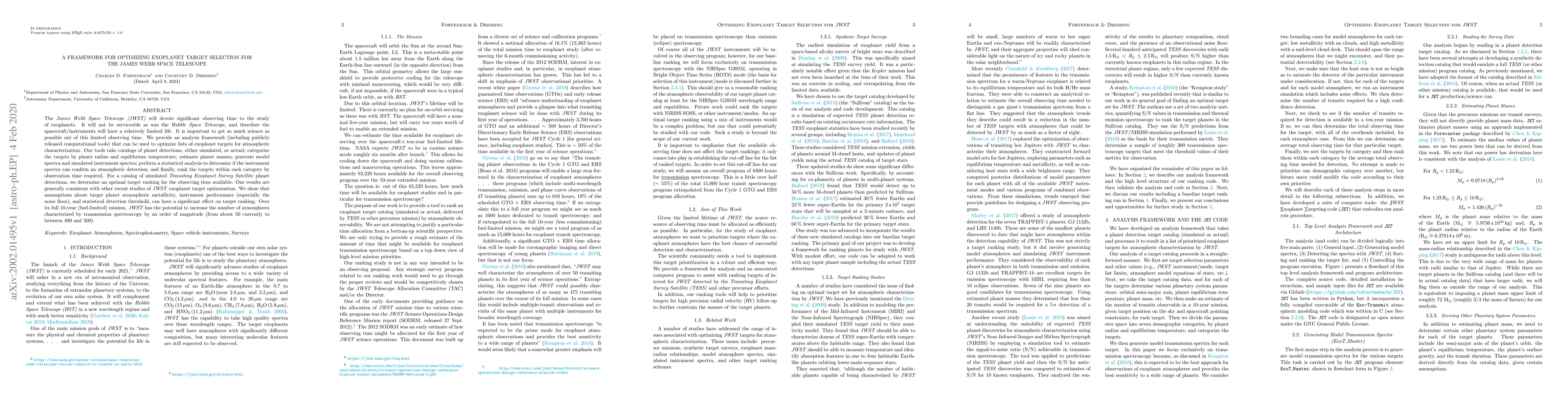 This paper presents an analytical framework and computational tools for optimizing exoplanet target selection for the James Webb Space Telescope (JWST), aiming to maximize scientific output within its limited operational lifespan. The framework evaluates planet detections, categorizes targets, estimates masses, generates spectra, and ranks targets based on observation time, demonstrating significant effects of assumptions on target ranking and projecting a tenfold increase in characterized exoplanet atmospheres over the mission's duration.