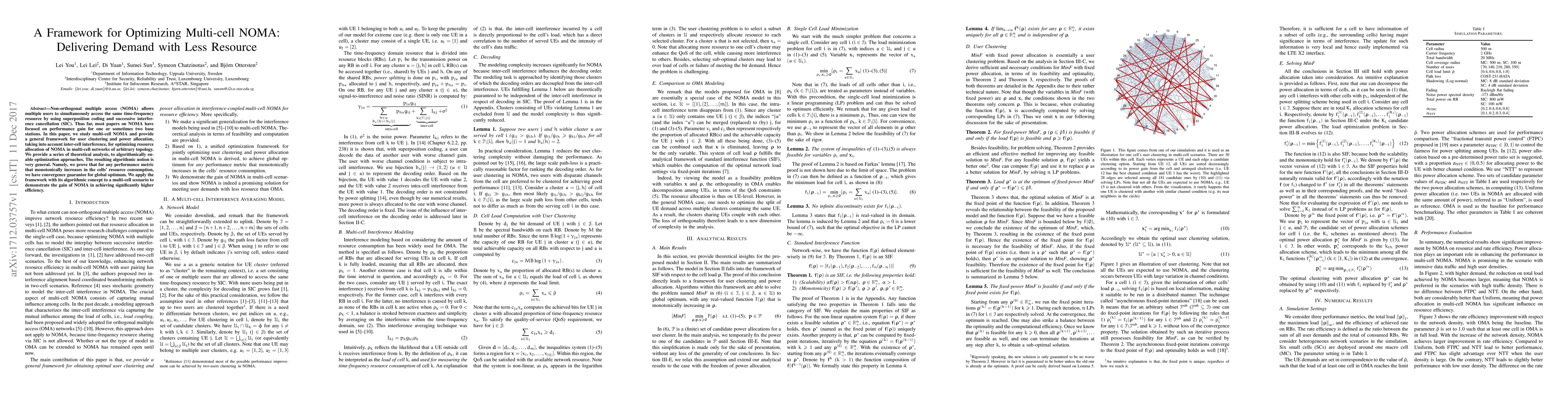 This paper introduces a framework for optimizing resource allocation in multi-cell non-orthogonal multiple access (NOMA) networks, focusing on user clustering and power allocation to manage inter-cell interference. The proposed framework guarantees convergence to the global optimum for any performance metric that increases with resource consumption, demonstrating significant efficiency gains for NOMA.
