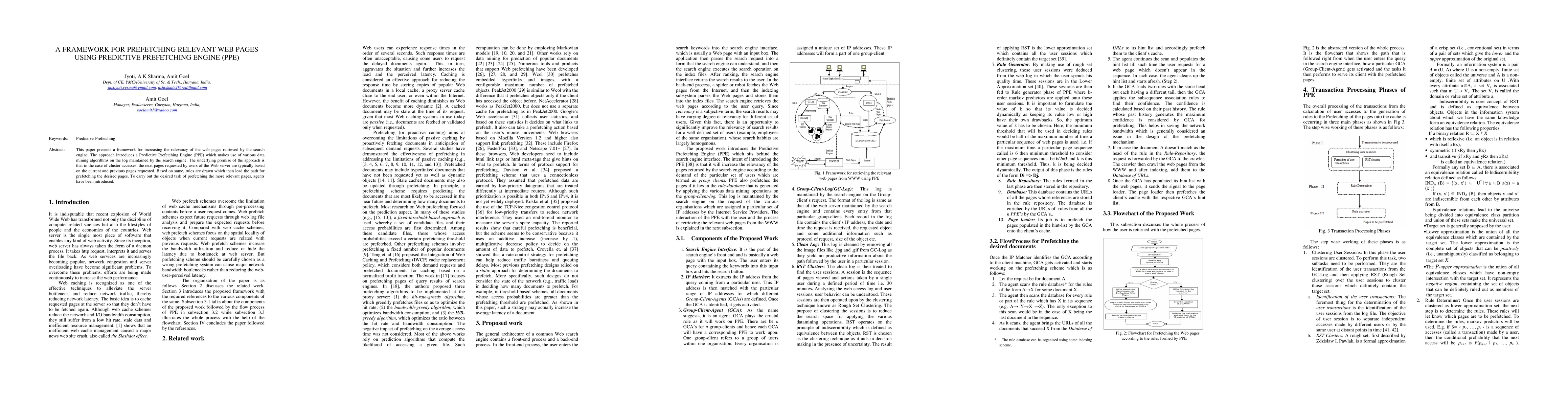 This paper proposes a framework using a Predictive Prefetching Engine (PPE) to enhance web page relevancy retrieved by search engines, leveraging data mining on server logs to anticipate user requests based on current and previous access patterns, employing agents to prefetch relevant pages.