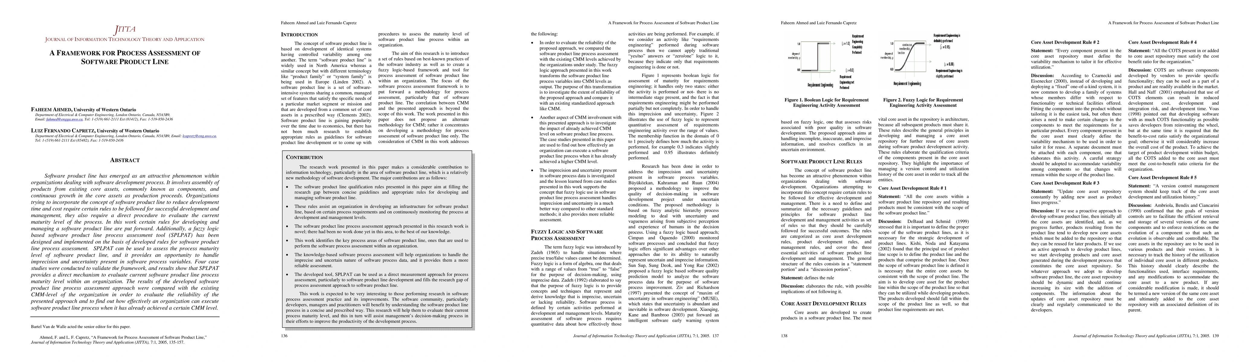 A framework for assessing software product line maturity was developed and implemented using fuzzy logic, showing its effectiveness in evaluating process maturity within organizations.