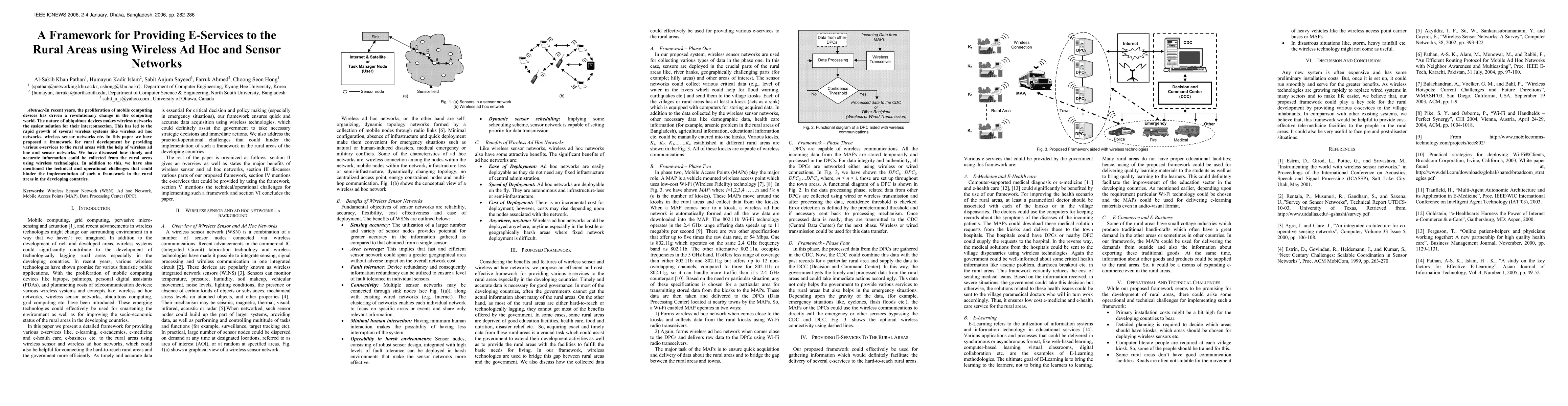 This paper proposes a framework leveraging wireless ad hoc and sensor networks to deliver e-services to rural areas, emphasizing timely data collection and addressing implementation challenges in developing regions. It highlights both the potential benefits and operational hurdles of such technological deployment in rural settings.