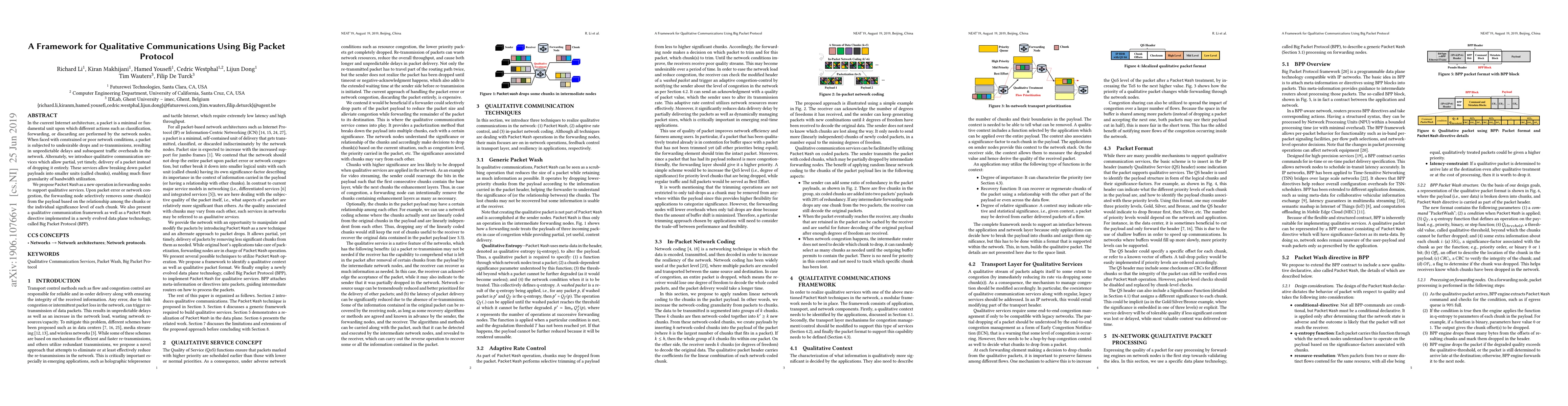 This paper proposes a qualitative communication framework using Big Packet Protocol (BPP) to enhance packet delivery under constrained network conditions. It introduces Packet Wash, a new operation that selectively removes less significant chunks from a packet to ensure timely delivery, thus improving bandwidth utilization and reducing traffic overheads.