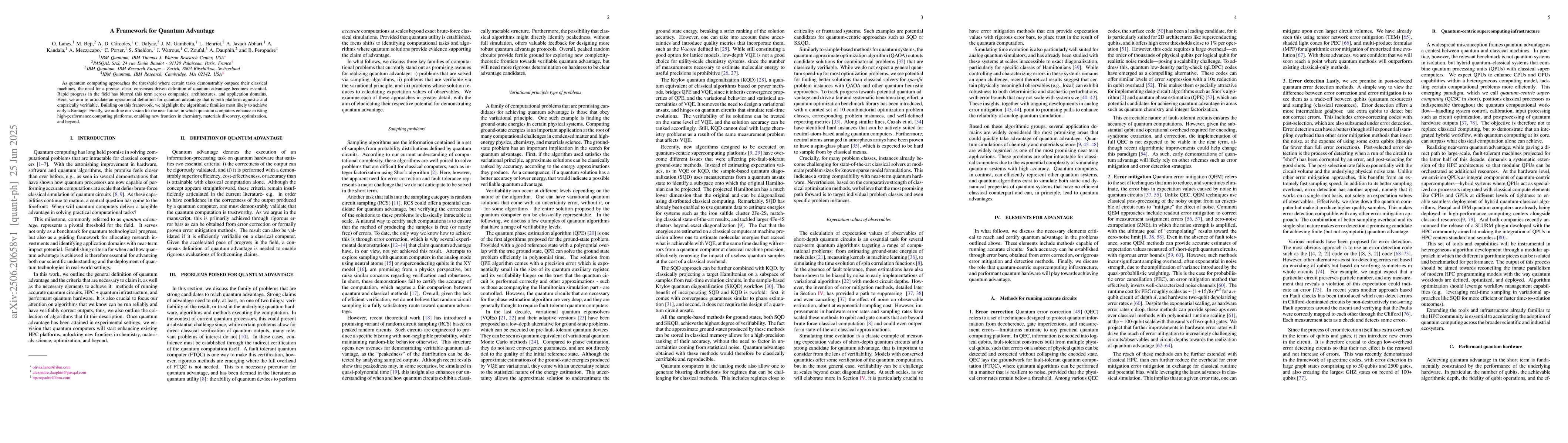As quantum computing approaches the threshold where certain tasks demonstrably outpace their classical machines, the need for a precise, clear, consensus-driven definition of quantum advantage becomes essential. Rapid progress in the field has blurred this term across companies, architectures, and application domains. Here, we aim to articulate an operational definition for quantum advantage that is both platform-agnostic and empirically verifiable. Building on this framework, we highlight the algorithmic families most likely to achieve early advantage. Finally, we outline our vision for the near future, in which quantum computers enhance existing high-performance computing platforms, enabling new frontiers in chemistry, materials discovery, optimization, and beyond.
