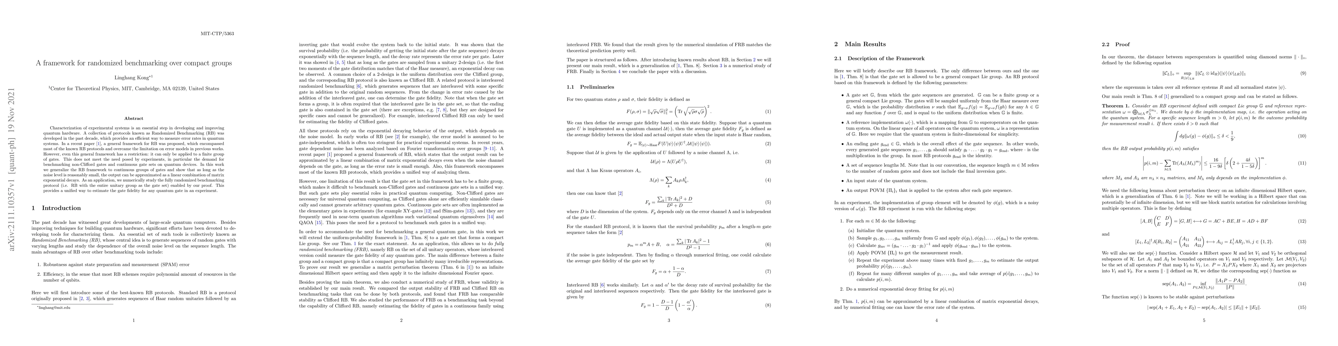 This paper generalizes Randomized Benchmarking (RB) to continuous groups of gates, enabling the estimation of gate fidelity for any quantum gate. It extends the existing RB framework to accommodate non-Clifford gates and continuous gate sets, providing a unified approach for benchmarking quantum hardware.