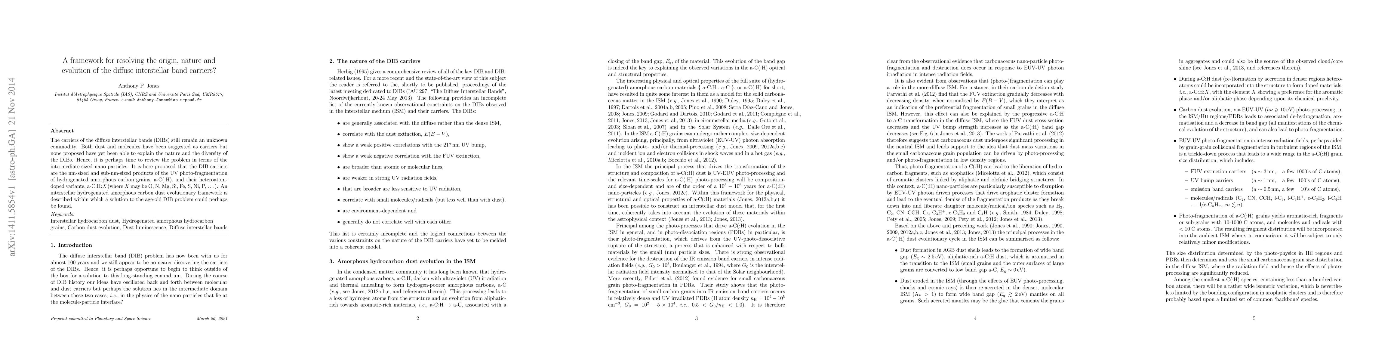 The carriers of the diffuse interstellar bands (DIBs) still remain an unknown commodity. Both dust and molecules have been suggested as carriers but none proposed have yet been able to explain the nature and the diversity of the DIBs. Hence, it is perhaps time to review the problem in terms of the intermediate-sized nano-particles. It is here proposed that the DIB carriers are the nm-sized and sub- nm-sized products of the UV photo-fragmentation of hydrogenated amorphous carbon grains, a-C(:H), and their heteroatom-doped variants, a-C:H:X (where X may be O, N, Mg, Si, Fe, S, Ni, P, ...). An interstellar hydrogenated amorphous carbon dust evolutionary framework is described within which a solution to the age-old DIB problem could perhaps be found.