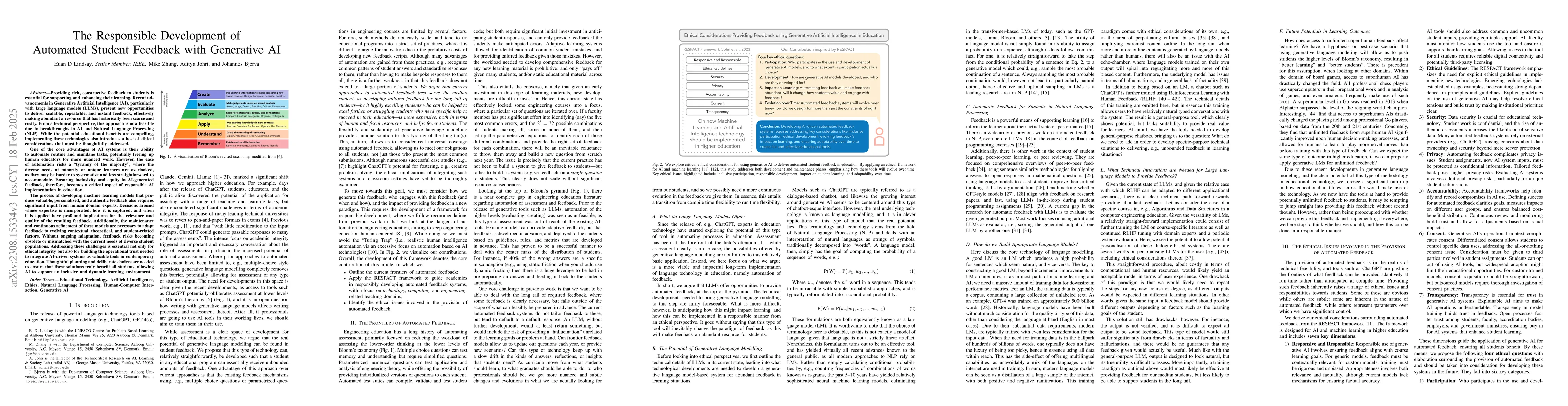 Providing rich feedback to students is essential for supporting student learning. Recent advances in generative AI, particularly within large language modelling (LLM), provide the opportunity to deliver repeatable, scalable and instant automatically generated feedback to students, making abundant a previously scarce and expensive learning resource. Such an approach is feasible from a technical perspective due to these recent advances in Artificial Intelligence (AI) and Natural Language Processing (NLP); while the potential upside is a strong motivator, doing so introduces a range of potential ethical issues that must be considered as we apply these technologies. The attractiveness of AI systems is that they can effectively automate the most mundane tasks; but this risks introducing a "tyranny of the majority", where the needs of minorities in the long tail are overlooked because they are difficult to automate. Developing machine learning models that can generate valuable and authentic feedback requires the input of human domain experts. The choices we make in capturing this expertise -- whose, which, when, and how -- will have significant consequences for the nature of the resulting feedback. How we maintain our models will affect how that feedback remains relevant given temporal changes in context, theory, and prior learning profiles of student cohorts. These questions are important from an ethical perspective; but they are also important from an operational perspective. Unless they can be answered, our AI generated systems will lack the trust necessary for them to be useful features in the contemporary learning environment. This article will outline the frontiers of automated feedback, identify the ethical issues involved in the provision of automated feedback and present a framework to assist academics to develop such systems responsibly.