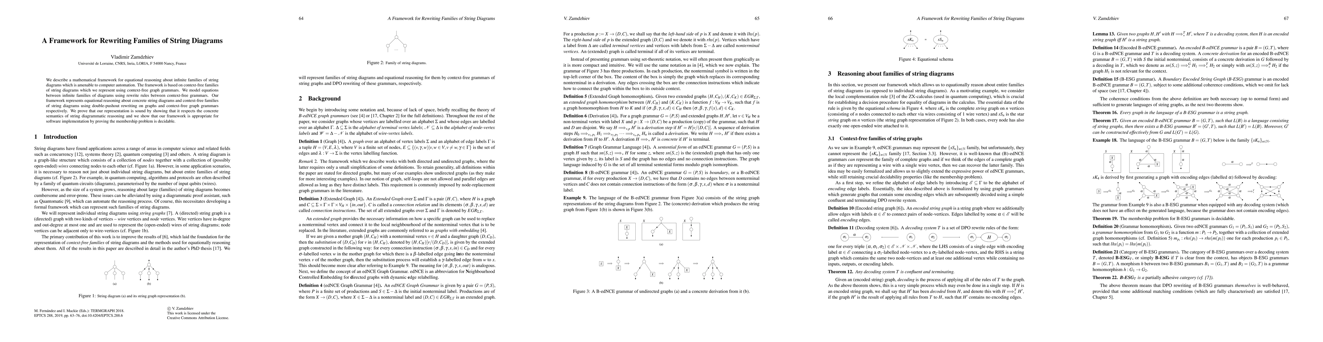 This paper proposes a mathematical framework for automating equational reasoning across infinite families of string diagrams using context-free graph grammars and double-pushout rewriting. The framework is proven sound and its membership problem decidable, demonstrating its suitability for software implementation.