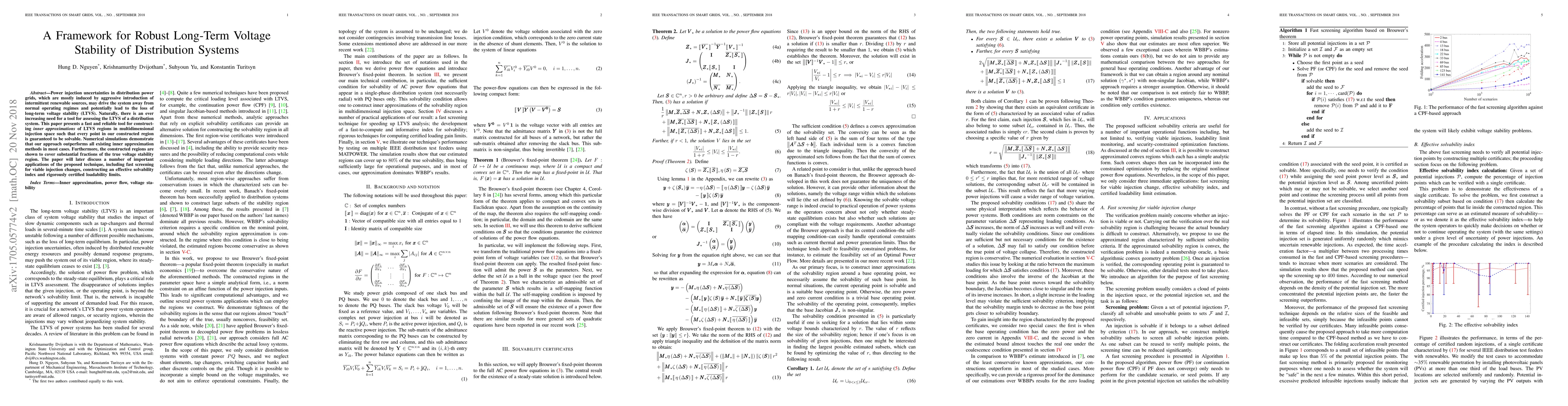 Power injection uncertainties in distribution power grids, which are mostly induced by aggressive introduction of intermittent renewable sources, may drive the system away from normal operating regimes and potentially lead to the loss of long-term voltage stability (LTVS). Naturally, there is an ever increasing need for a tool for assessing the LTVS of a distribution system. This paper presents a fast and reliable tool for constructing \emph{inner approximations} of LTVS regions in multidimensional injection space such that every point in our constructed region is guaranteed to be solvable. Numerical simulations demonstrate that our approach outperforms all existing inner approximation methods in most cases. Furthermore, the constructed regions are shown to cover substantial fractions of the true voltage stability region. The paper will later discuss a number of important applications of the proposed technique, including fast screening for viable injection changes, constructing an effective solvability index and rigorously certified loadability limits.