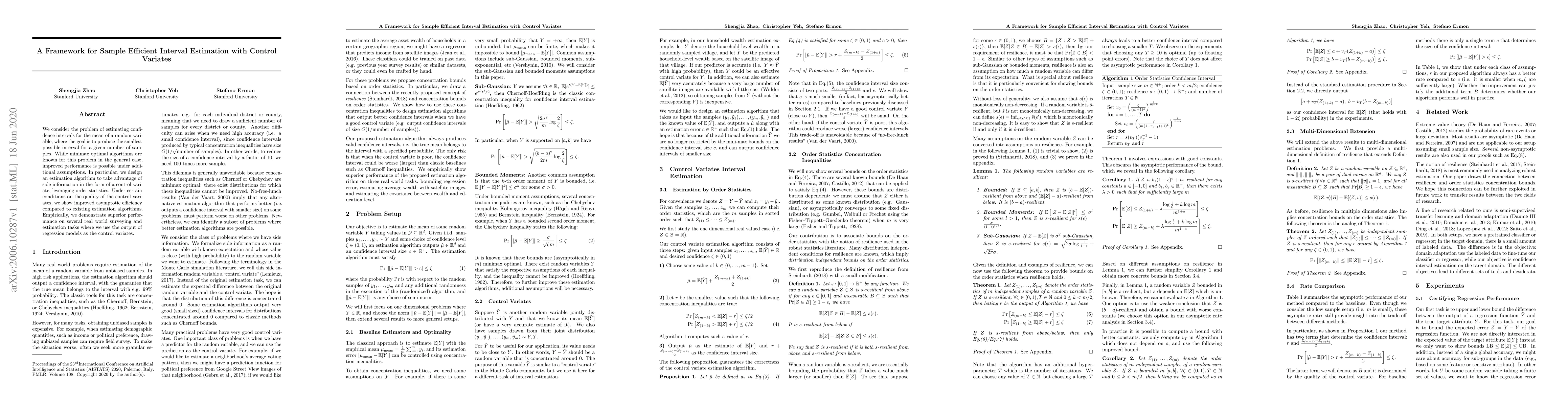 This paper proposes an estimation framework that uses control variates and order statistics to achieve more efficient interval estimation for the mean of a random variable. The method demonstrates improved asymptotic efficiency and superior empirical performance in real-world applications, particularly when regression model outputs serve as control variates.