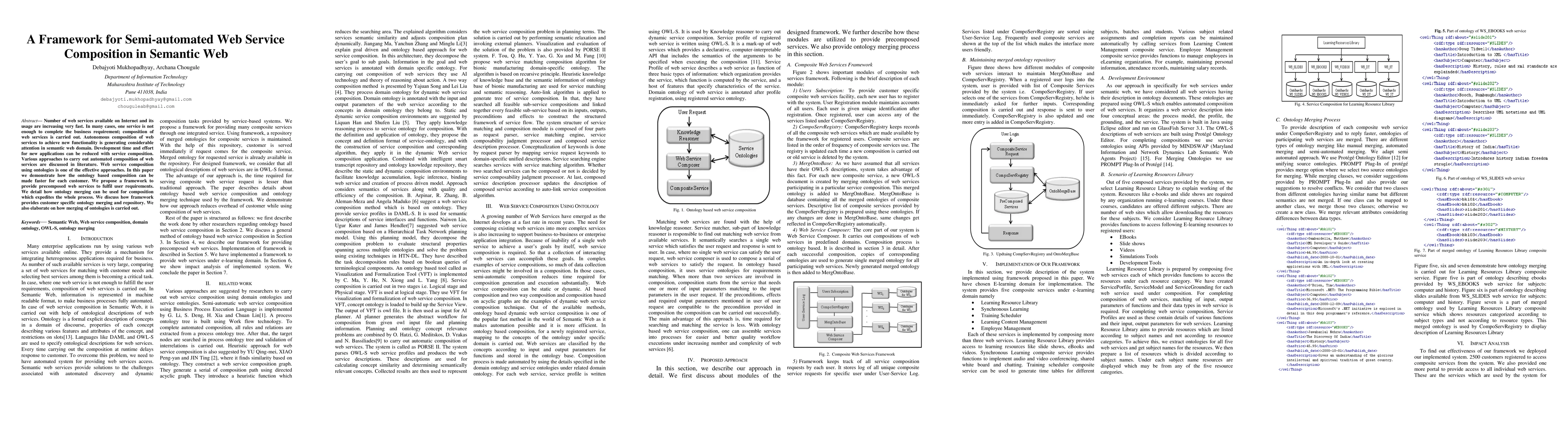This paper proposes a framework for semi-automated web service composition using ontologies to expedite the process. It introduces a method for precomposing services and merging customer-specific ontologies to fulfill user requirements efficiently.