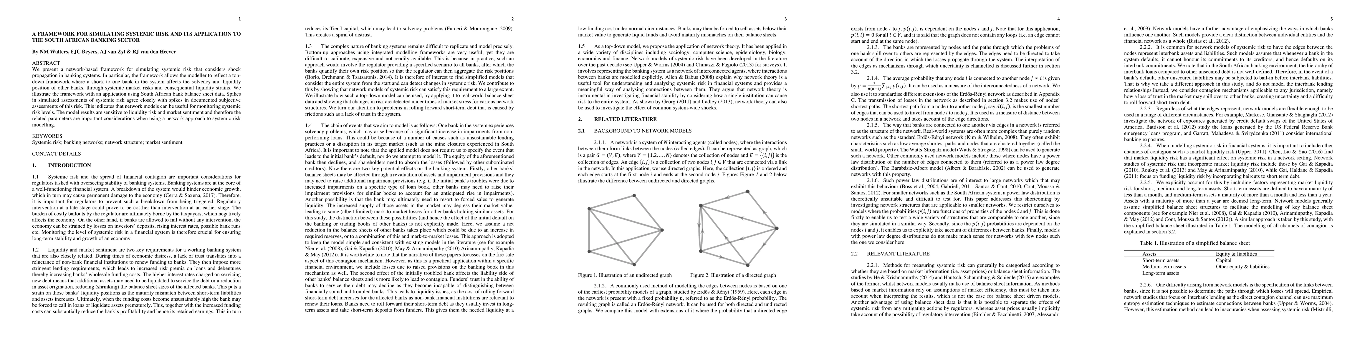 This paper introduces a network-based framework for simulating systemic risk in banking systems, emphasizing shock propagation through market risks and liquidity strains. The framework is applied to South African banks, showing that simulated risk spikes align with documented assessments, highlighting the utility of network models for monitoring systemic risk.