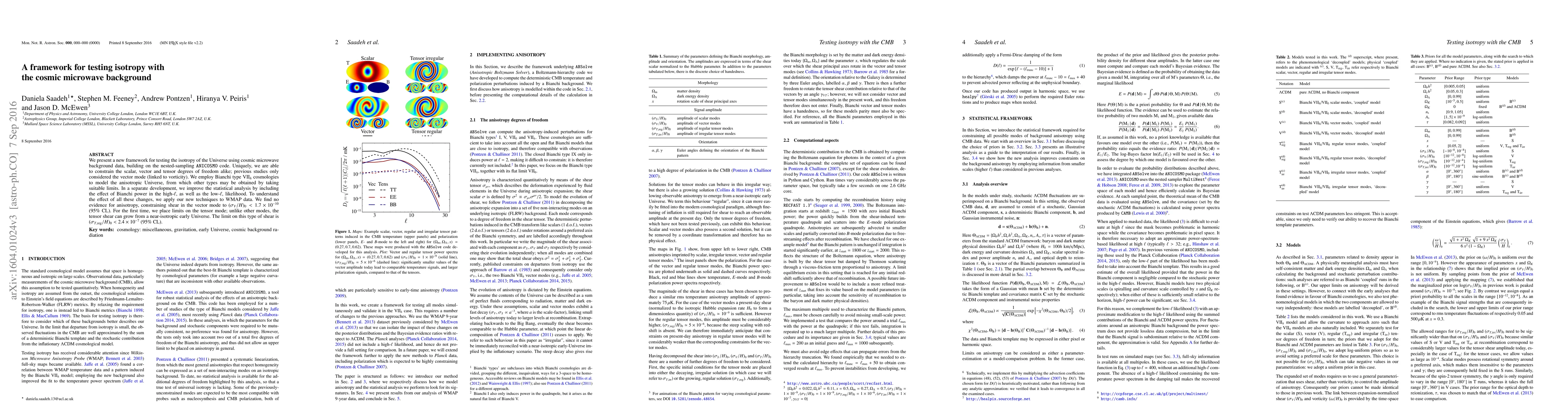 We present a new framework for testing the isotropy of the Universe using cosmic microwave background data, building on the nested-sampling ANICOSMO code. Uniquely, we are able to constrain the scalar, vector and tensor degrees of freedom alike; previous studies only considered the vector mode (linked to vorticity). We employ Bianchi type VII$_h$ cosmologies to model the anisotropic Universe, from which other types may be obtained by taking suitable limits. In a separate development, we improve the statistical analysis by including the effect of Bianchi power in the high-$\ell$, as well as the low-$\ell$, likelihood. To understand the effect of all these changes, we apply our new techniques to WMAP data. We find no evidence for anisotropy, constraining shear in the vector mode to $(\sigma_V/H)_0 < 1.7 \times 10^{-10}$ (95% CL). For the first time, we place limits on the tensor mode; unlike other modes, the tensor shear can grow from a near-isotropic early Universe. The limit on this type of shear is $(\sigma_{T,\rm reg}/H)_0 < 2.4 \times 10^{-7}$ (95% CL).