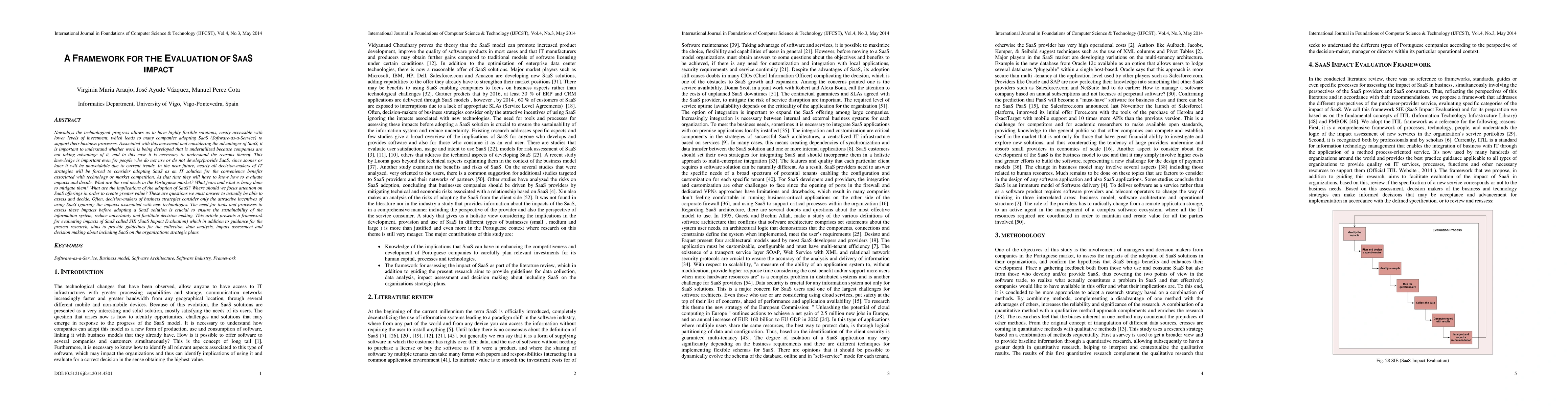 Nowadays the technological progress allows us to have highly flexible solutions, easily accessible with lower levels of investment, which leads to many companies adopting SaaS (Software-as-a-Service) to support their business processes. Associated with this movement and considering the advantages of SaaS, it is important to understand whether work is being developed that is underutilized because companies are not taking advantage of it, and in this case it is necessary to understand the reasons thereof. This knowledge is important even for people who do not use or do not develop/provide SaaS, since sooner or later it will be unavoidable due to current trends. In the near future, nearly all decision-makers of IT strategies will be forced to consider adopting SaaS as an IT solution for the convenience benefits associated with technology or market competition. At that time they will have to know how to evaluate impacts and decide. Often, decision-makers of business strategies consider only the attractive incentives of using SaaS ignoring the impacts associated with new technologies. The need for tools and processes to assess these impacts before adopting a SaaS solution is crucial to ensure the sustainability of the information system, reduce uncertainty and facilitate decision making. This article presents a framework for evaluating impacts of SaaS called SIE (SaaS Impact Evaluation) which in addition to guidance for the present research, aims to provide guidelines for the collection, data analysis, impact assessment and decision making about including SaaS on the organizations strategic plans.