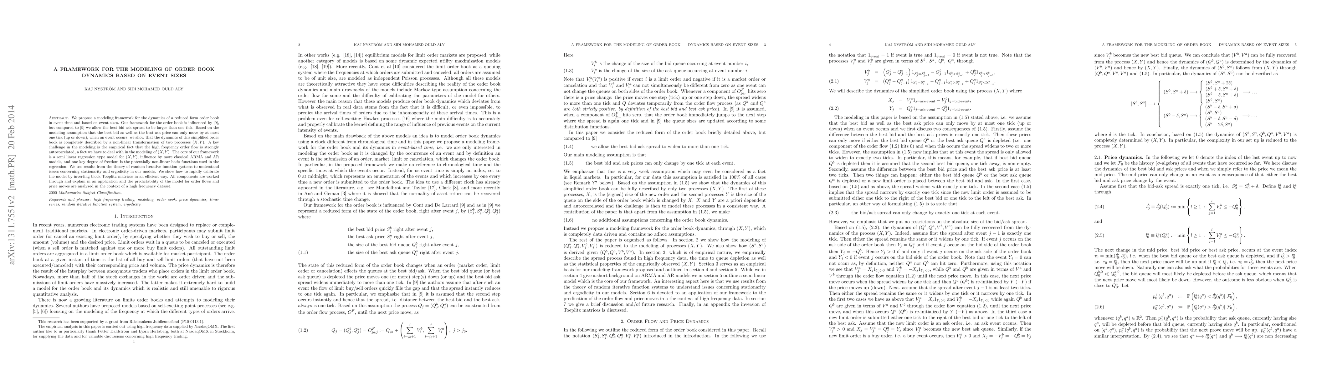 We propose a modeling framework for the dynamics of a reduced form order book in event time and based on event sizes. Our framework for the order book is influenced by [9], but compared to [9] we allow the best bid ask spread to be larger than one tick. Based on the modeling assumption that the best bid as well as the best ask price can only move by at most one tick (up or down), when an event occurs, we show that the dynamics of this simplified order book is completely described by a non-linear transformation of two processes (X, Y ). A key challenge in the modeling is the empirical fact that the high frequency order flow is strongly autocorrelated, a fact we have to deal with in the modeling of (X, Y ). The core of our framework is a semi linear regression type model for (X, Y ), influence by more classical ARMA and AR models, and one key degree of freedom is the potentially non-linear basis functions used in the regression. We use results from the theory of random iterative function systems to understand issues concerning stationarity and ergodicity in our models. We show how to rapidly calibrate the model by inverting block Toeplitz matrices in an efficient way. All components are worked through and explain in an application and the predictability of the model for order flows and price moves are analyzed in the context of a high frequency dataset.